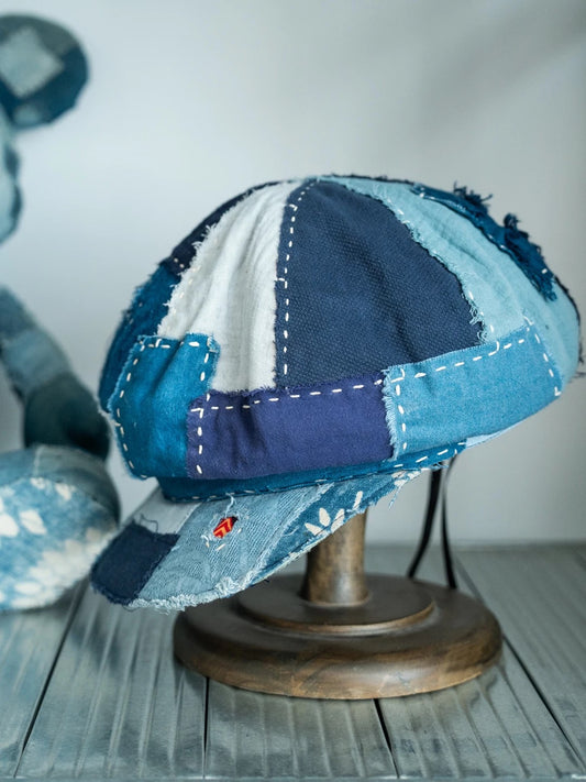 Indigo Dye Patchwork Sashiko Melon Hat