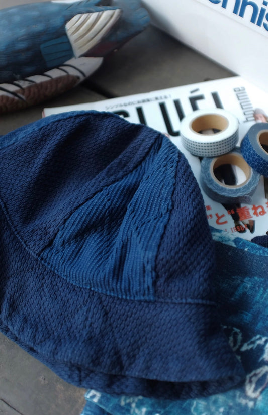 Indigo Dye Kofu Patchwork Bucket Hat