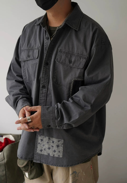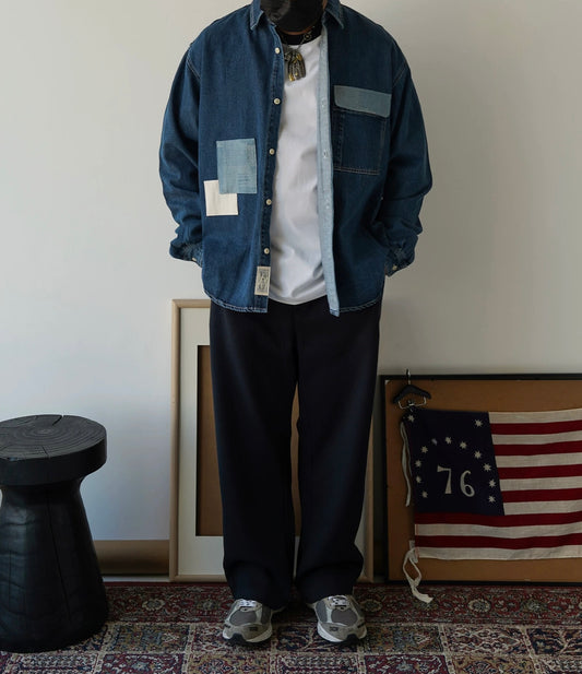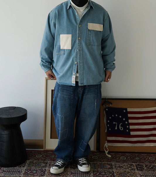 Indigo Dye Sashiko Reversible Baseball Shirt
