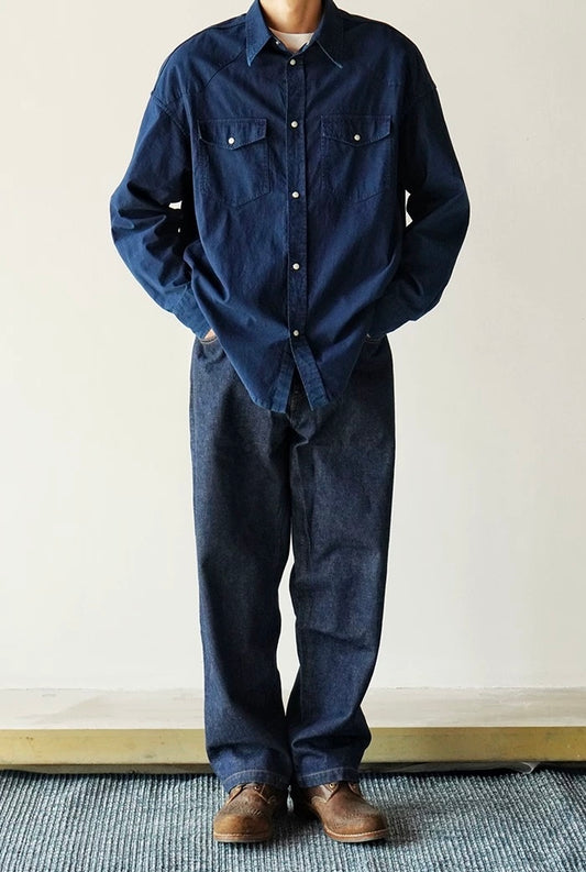 Indigo Dye Mulberry Silk Worker ShirtRegular price $237.00 USDRegular priceUnit price / per-