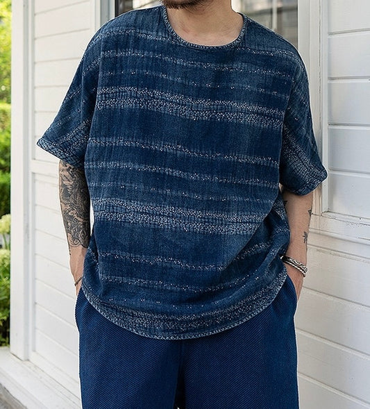 Indigo Dye Sashiko Striped T-ShirtRegular price $276.00 USDRegular priceUnit price / per