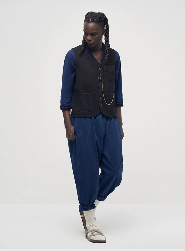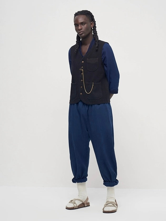 Please note that due to the nature of indigo dye, slight color variations and fading over time are natural and contribute to the unique character of the garment.