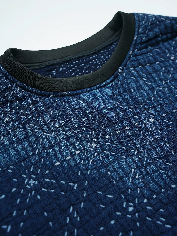 Dark Indigo Dye Sashiko Starry Night Sweatshirt