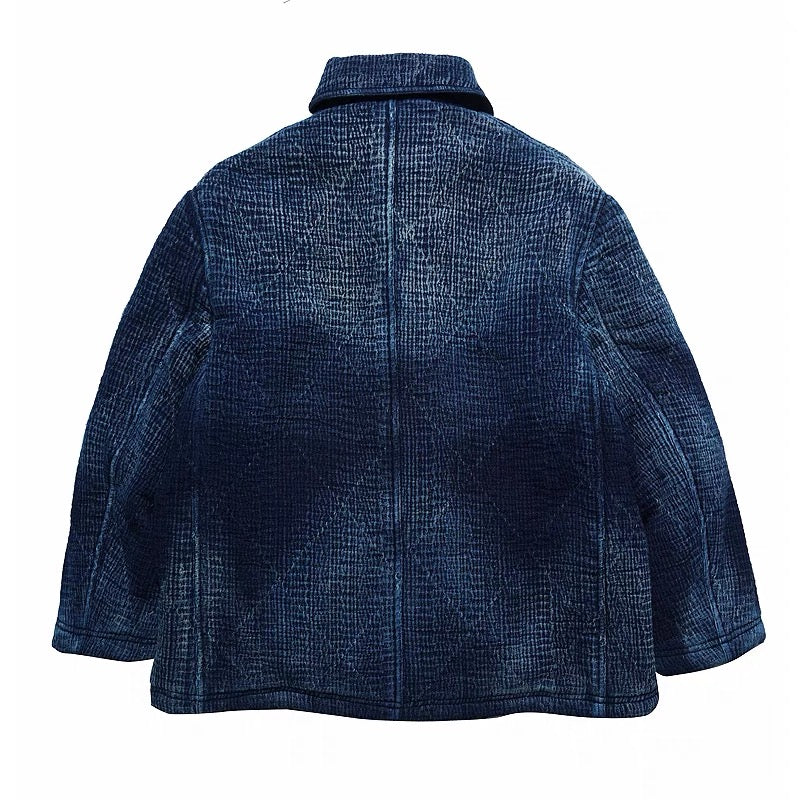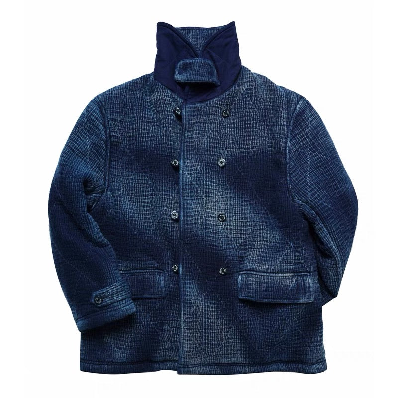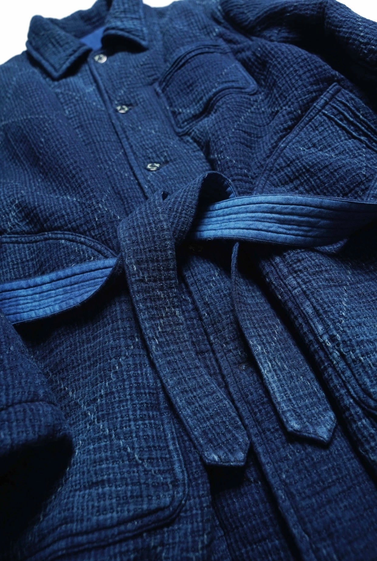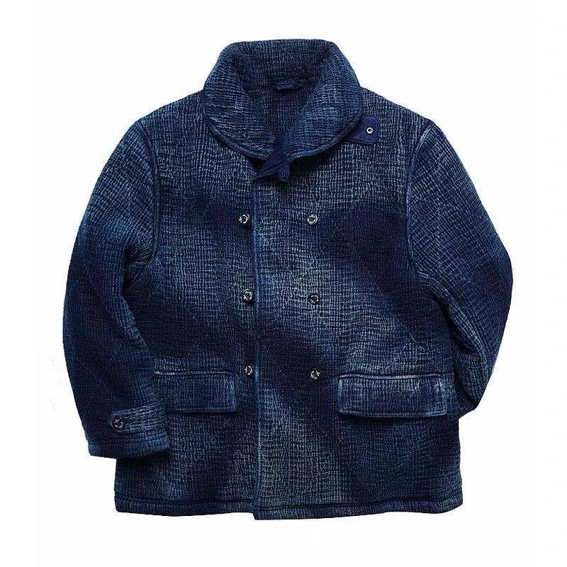 Dark Indigo Dye Sashiko Double-Breasted Coat