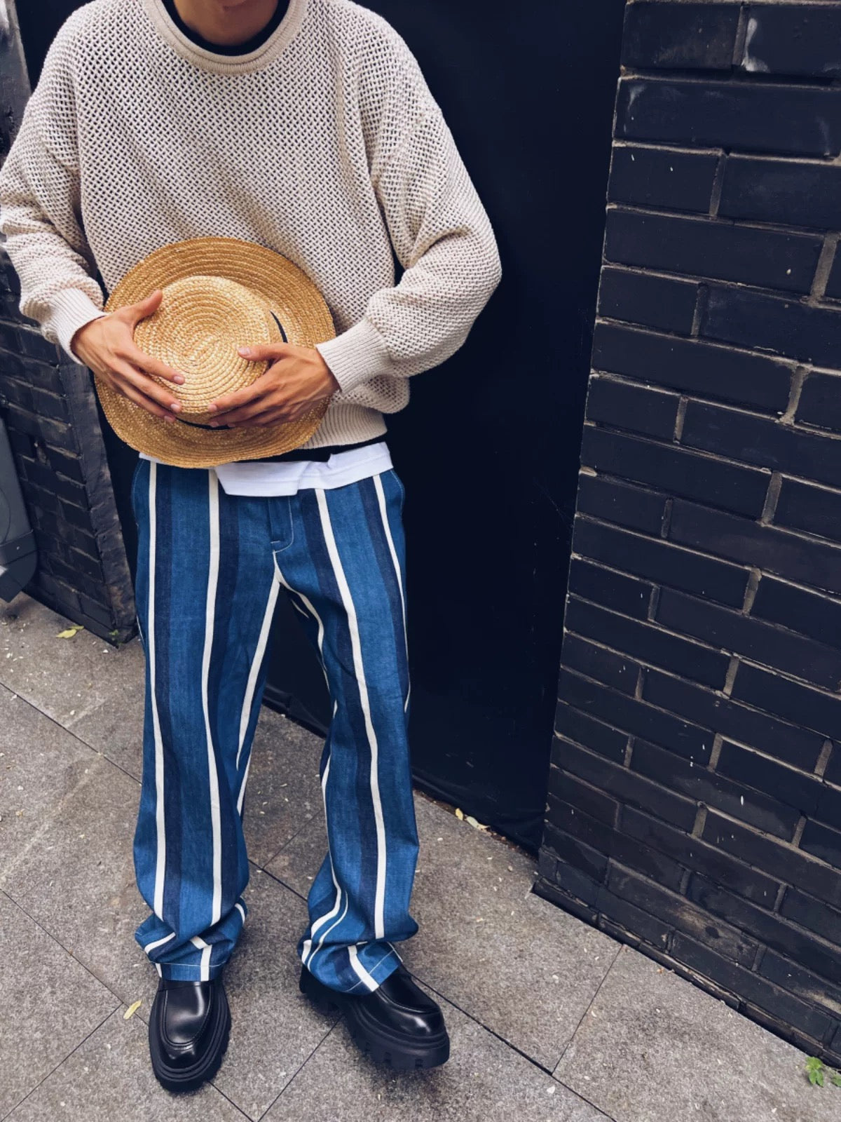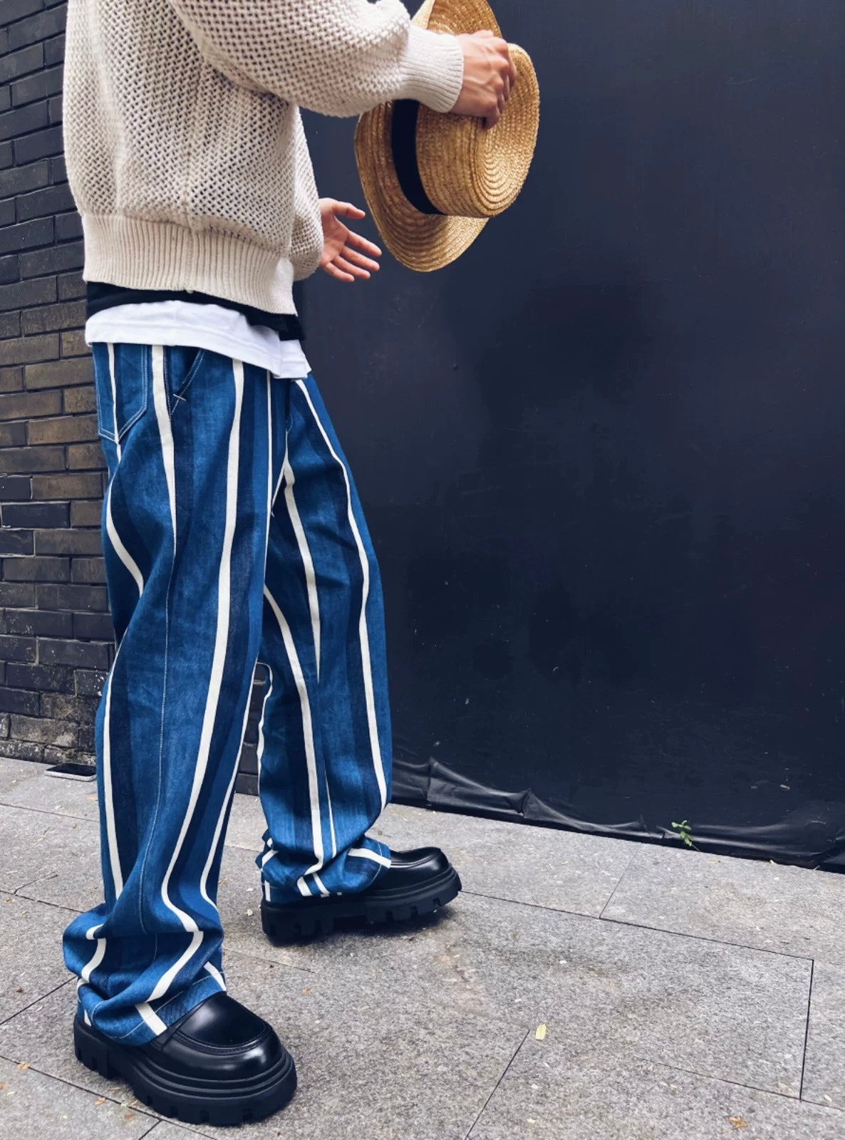 Denim Patchwork Striped Pants