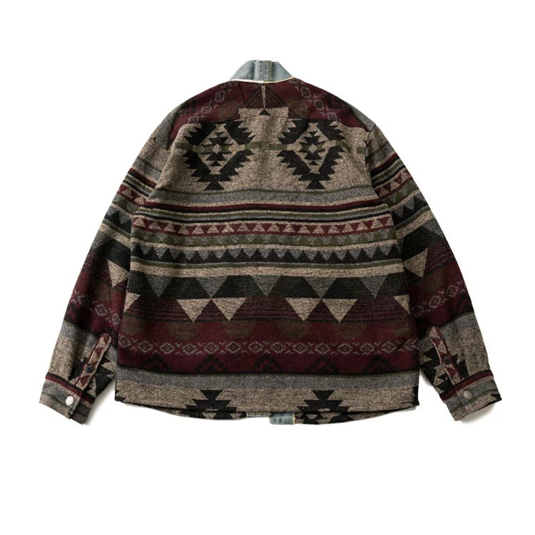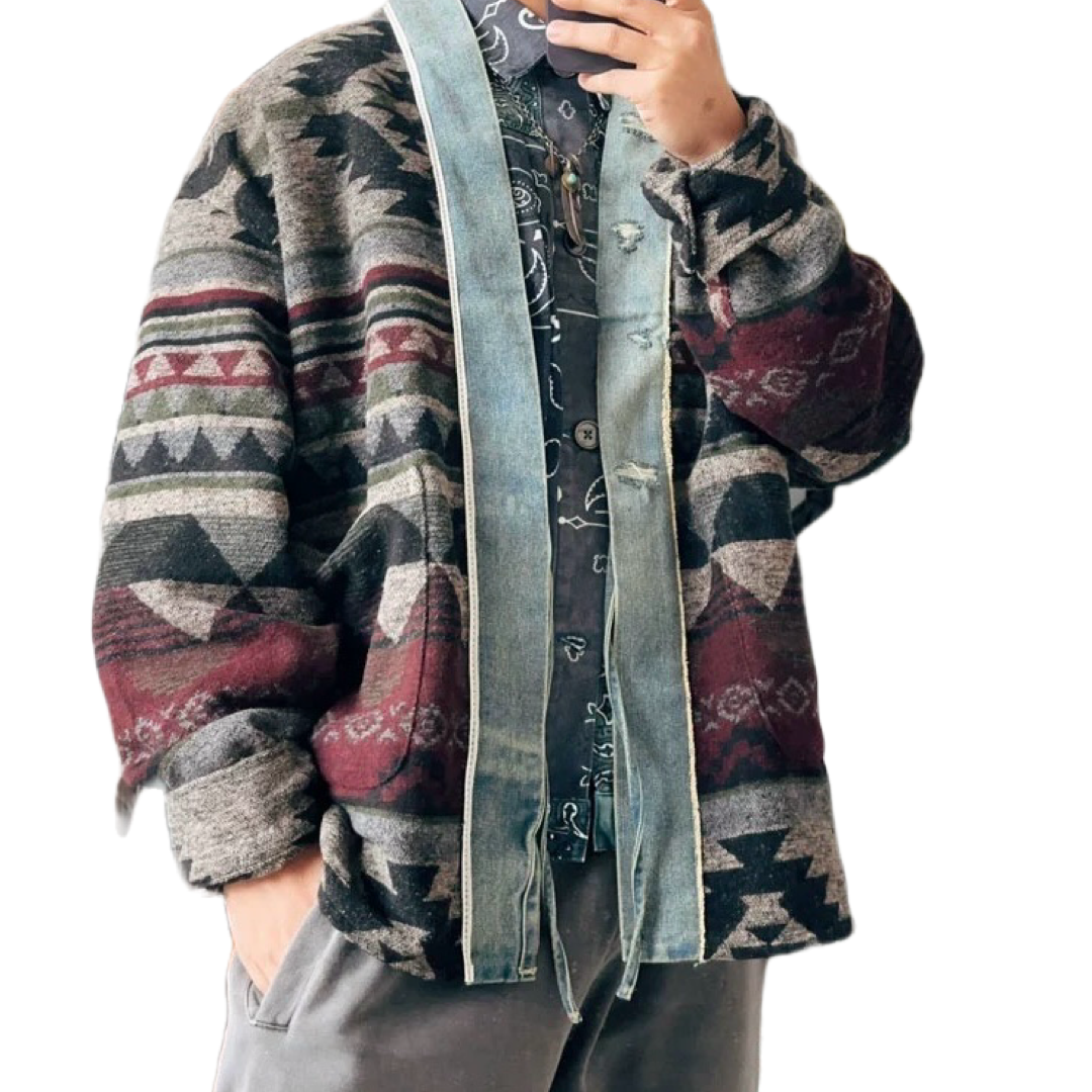 Grey Denim Distressed Folk Kimono Jacket