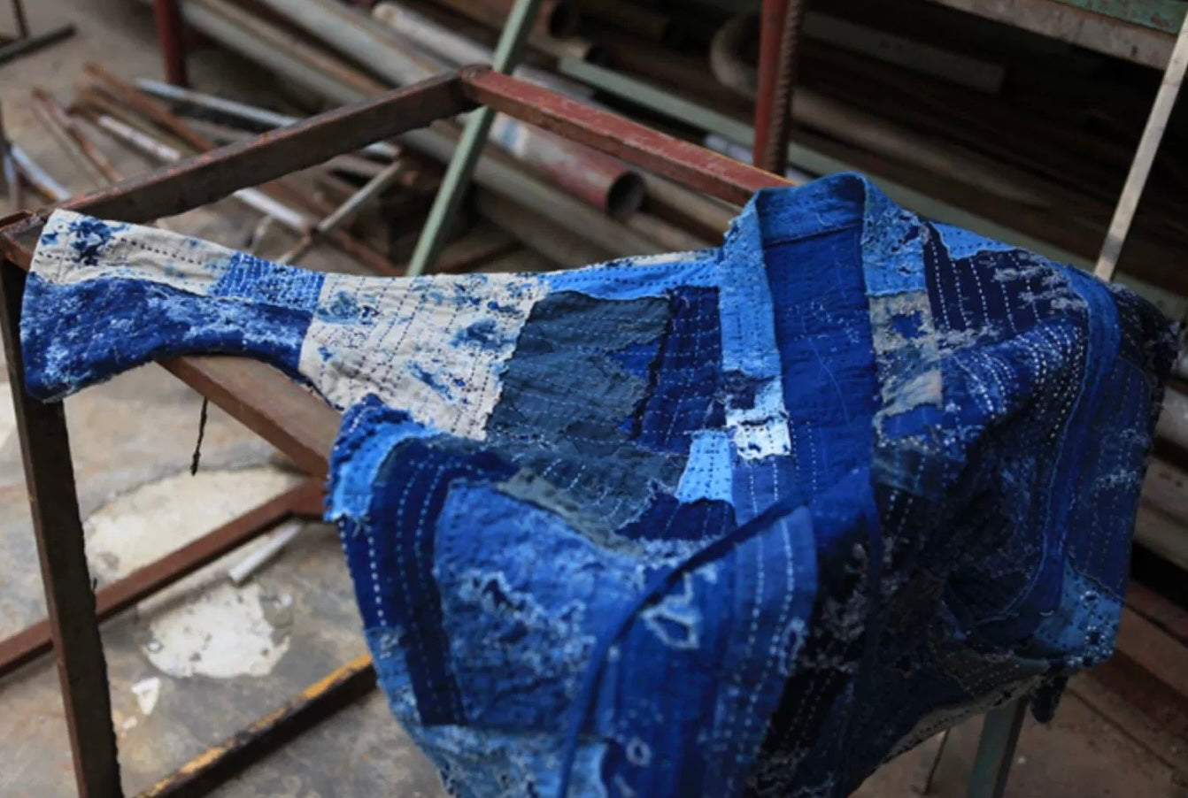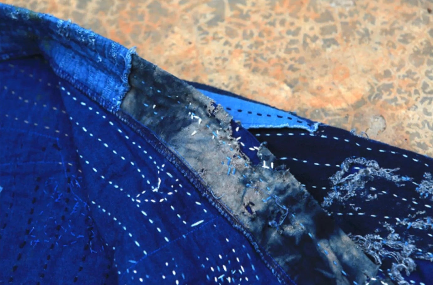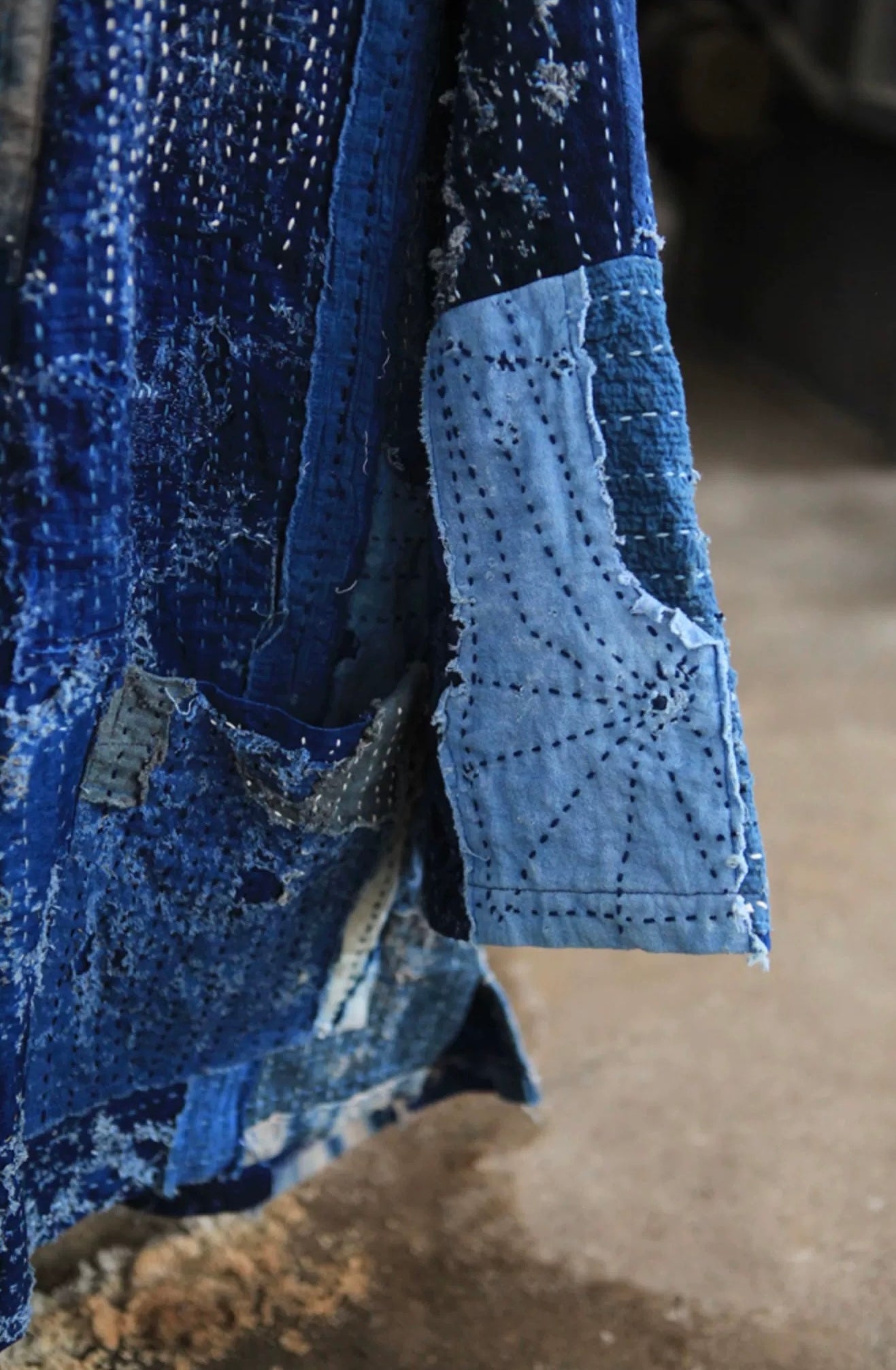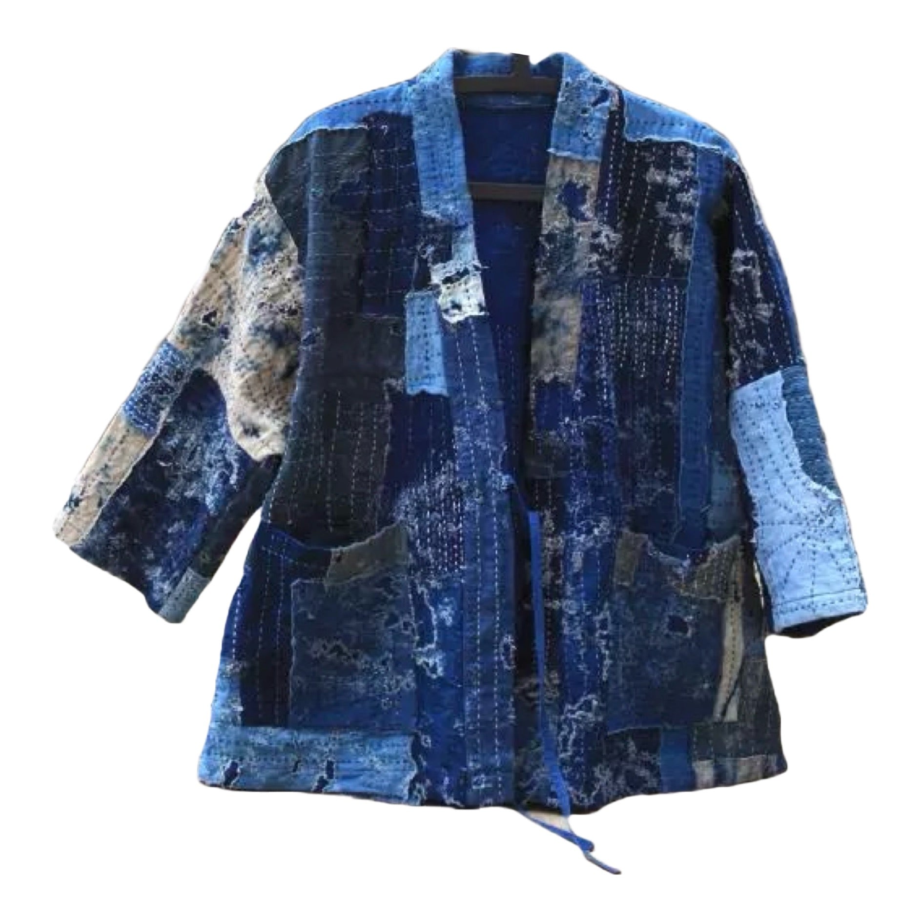 Handmade Indigo Dye Boro Sashiko Kimono Jacket