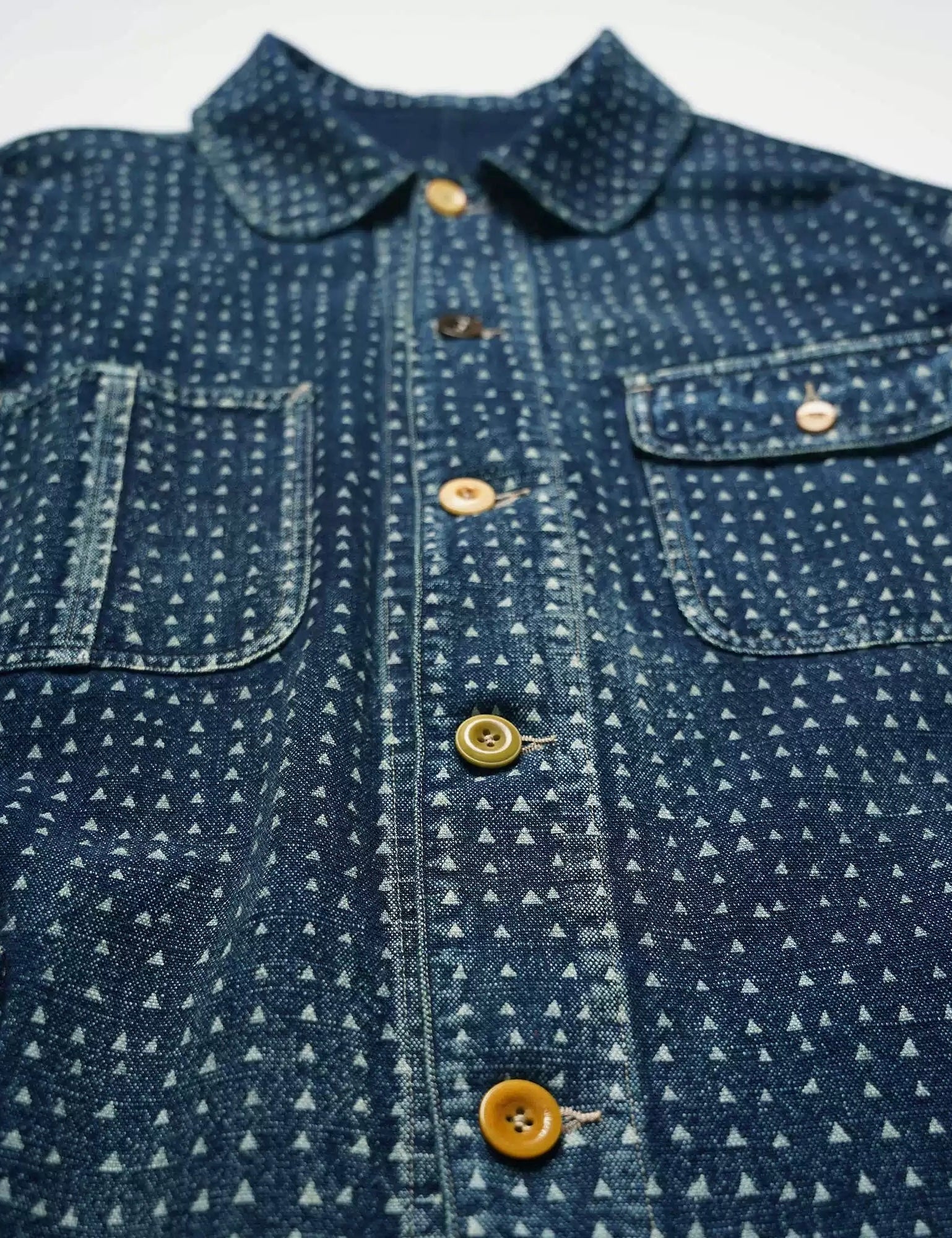 Indigo Discharge Dye 4 Pockets French Worker Jacket
