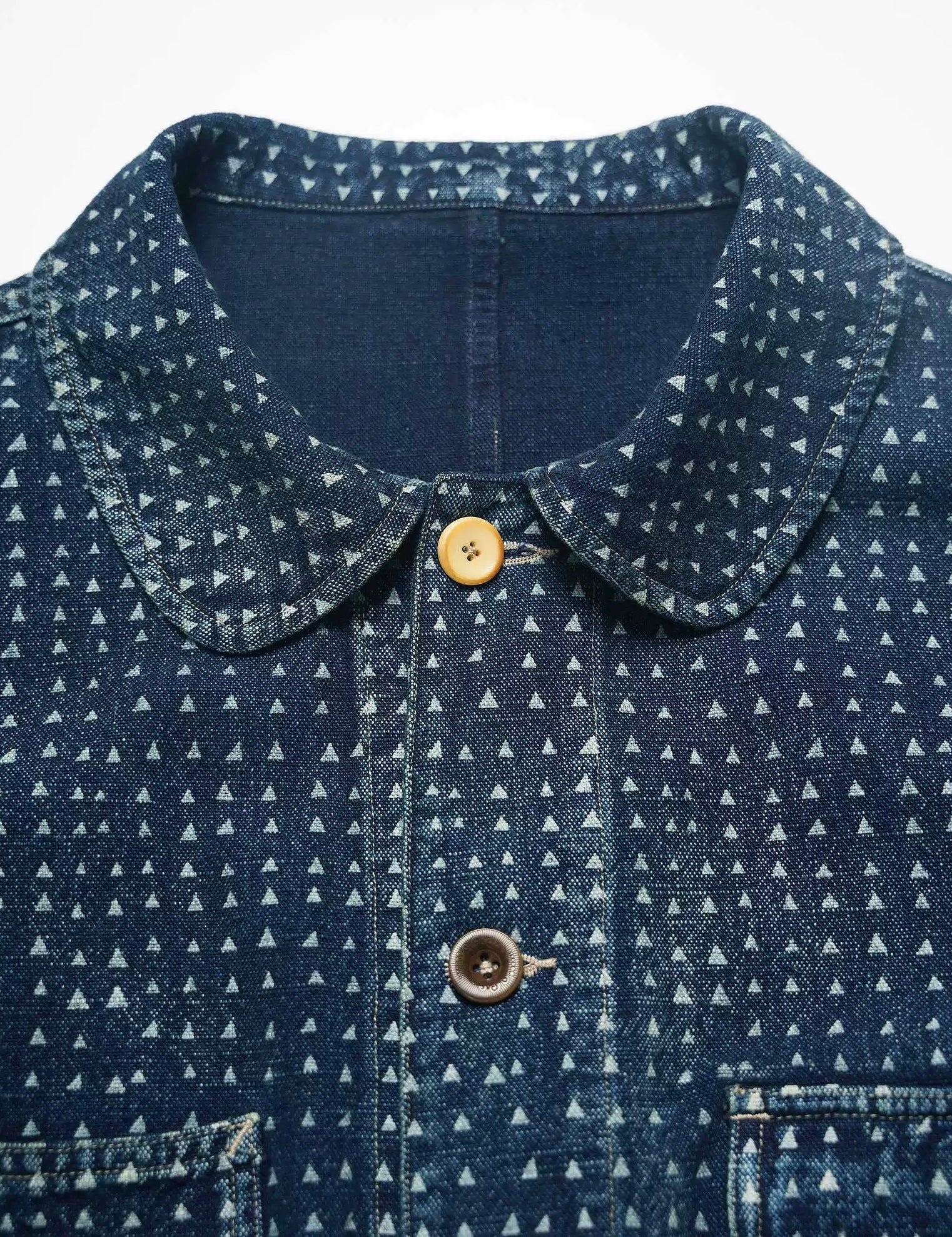 Our Indigo Discharge Dye 4 Pockets French Worker Jacket is a fresh take on our best-selling design. This version incorporates a classic French worker jacket style, featuring four spacious pockets for a more utilitarian, workwear-inspired look. Crafted using a challenging discharge dye technique, this jacket showcases a unique blend of retro charm and timeless elegance. The choice of buttons further enhances its vintage appeal, making it a perfect mix of practicality and style. Each piece is carefully made to offer both comfort and character, a true statement in modern craftsmanship.