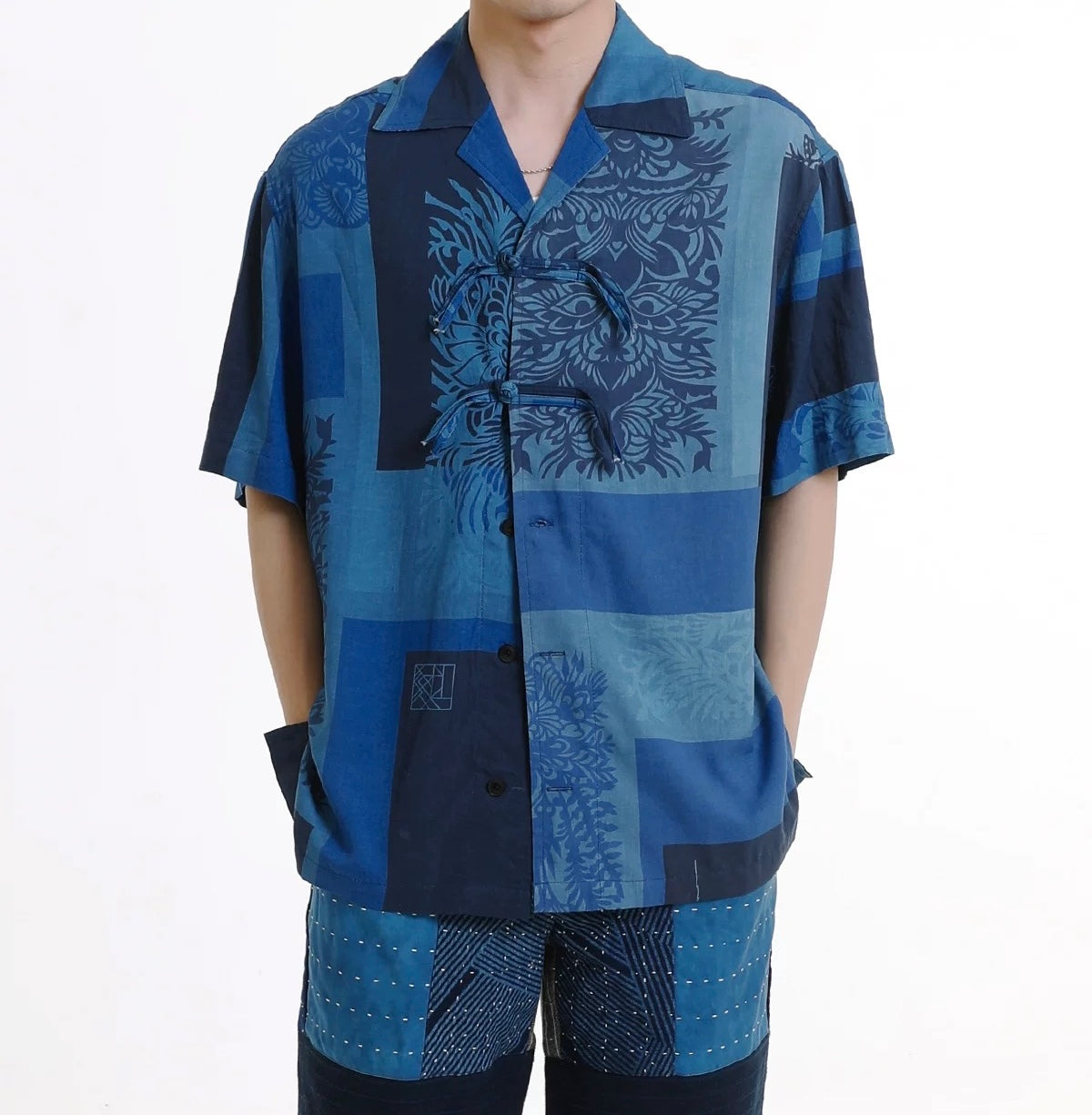 Natural Indigo Dye: Hand-dyed using traditional indigo techniques, this Aloha shirt showcases a vibrant and deep blue color. The natural dyeing process ensures each shirt is uniquely colored with rich, dynamic hues.