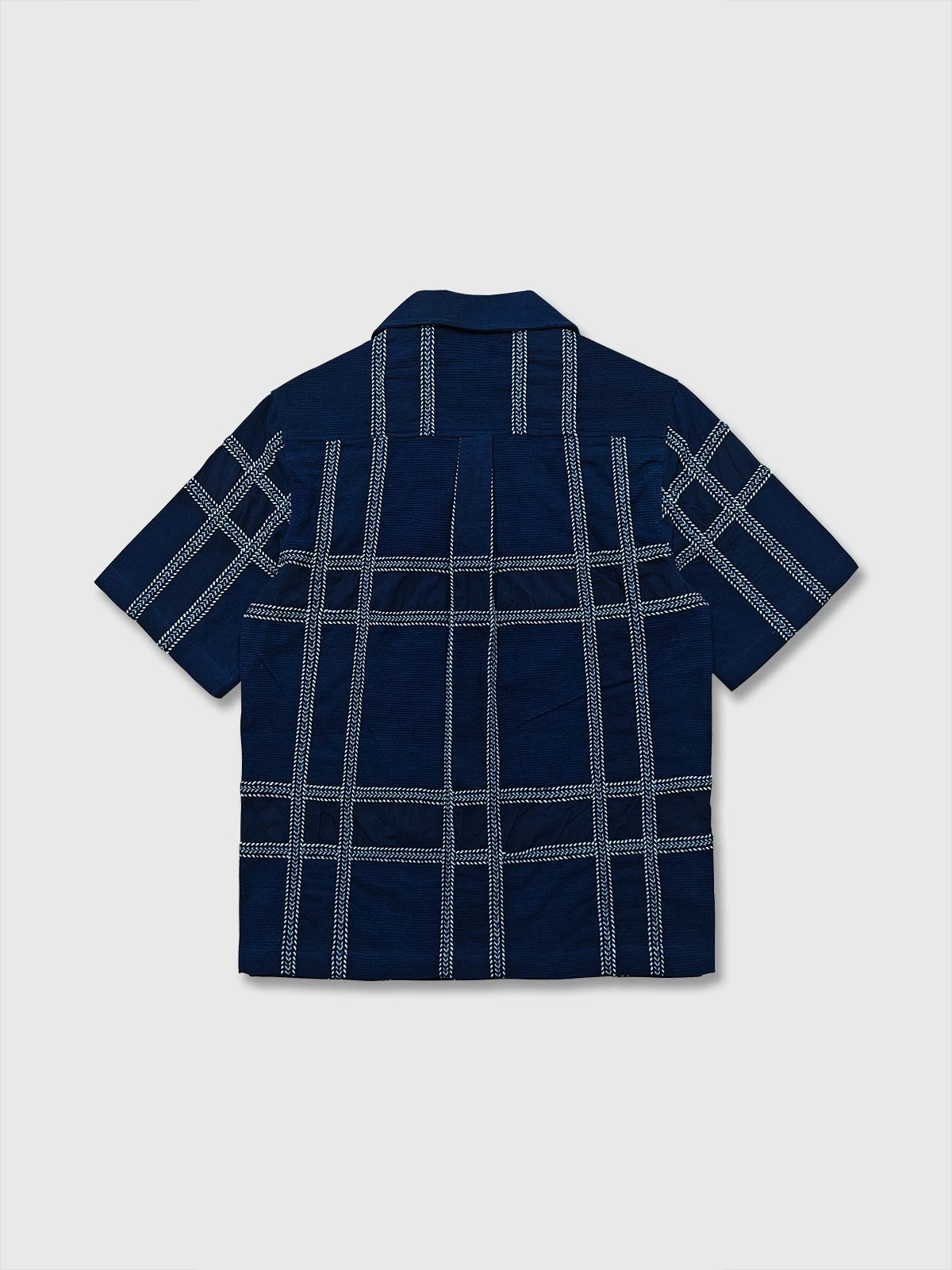 Jacquard Checked Pattern: Featuring a sophisticated jacquard weave, the shirt presents an intricate checked pattern woven into the fabric. This adds texture and visual interest, enhancing its overall design.