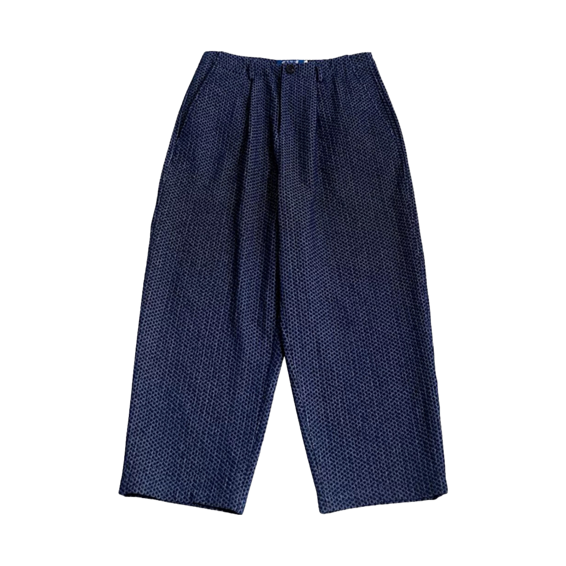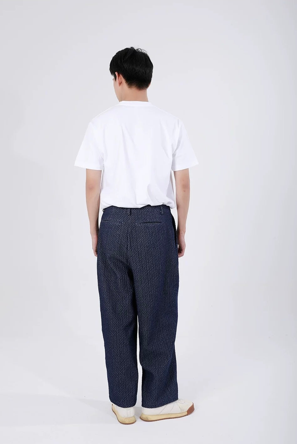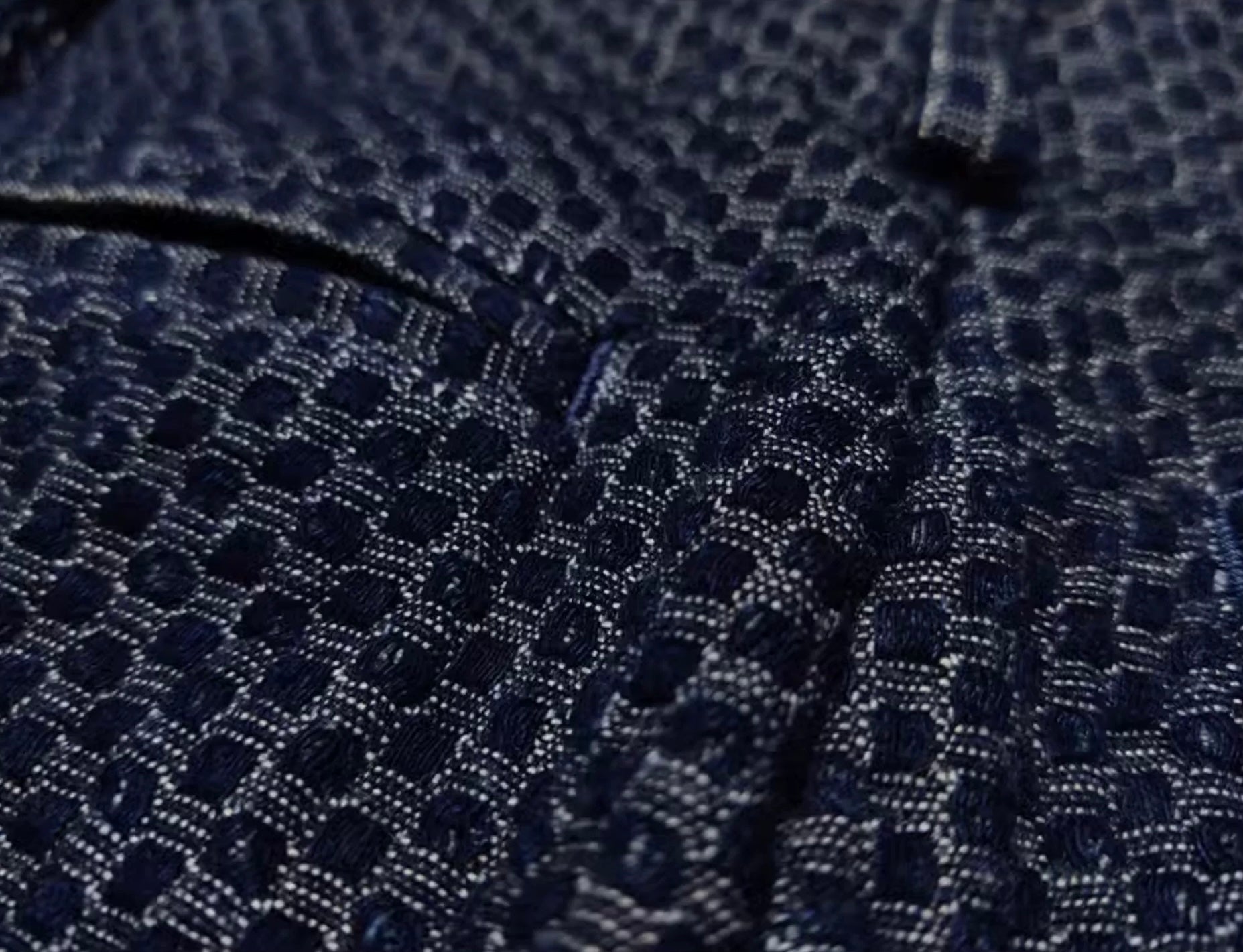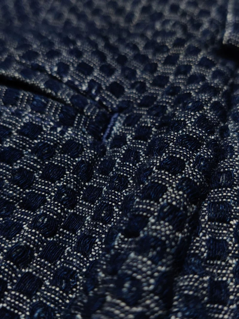 Artisanal Craftsmanship: Each pair is meticulously crafted with attention to detail, reflecting the artistry of the indigo dyeing and jacquard weaving processes. The result is a beautifully crafted garment with a distinctive, high-quality finish.