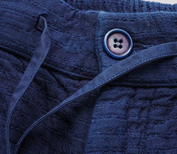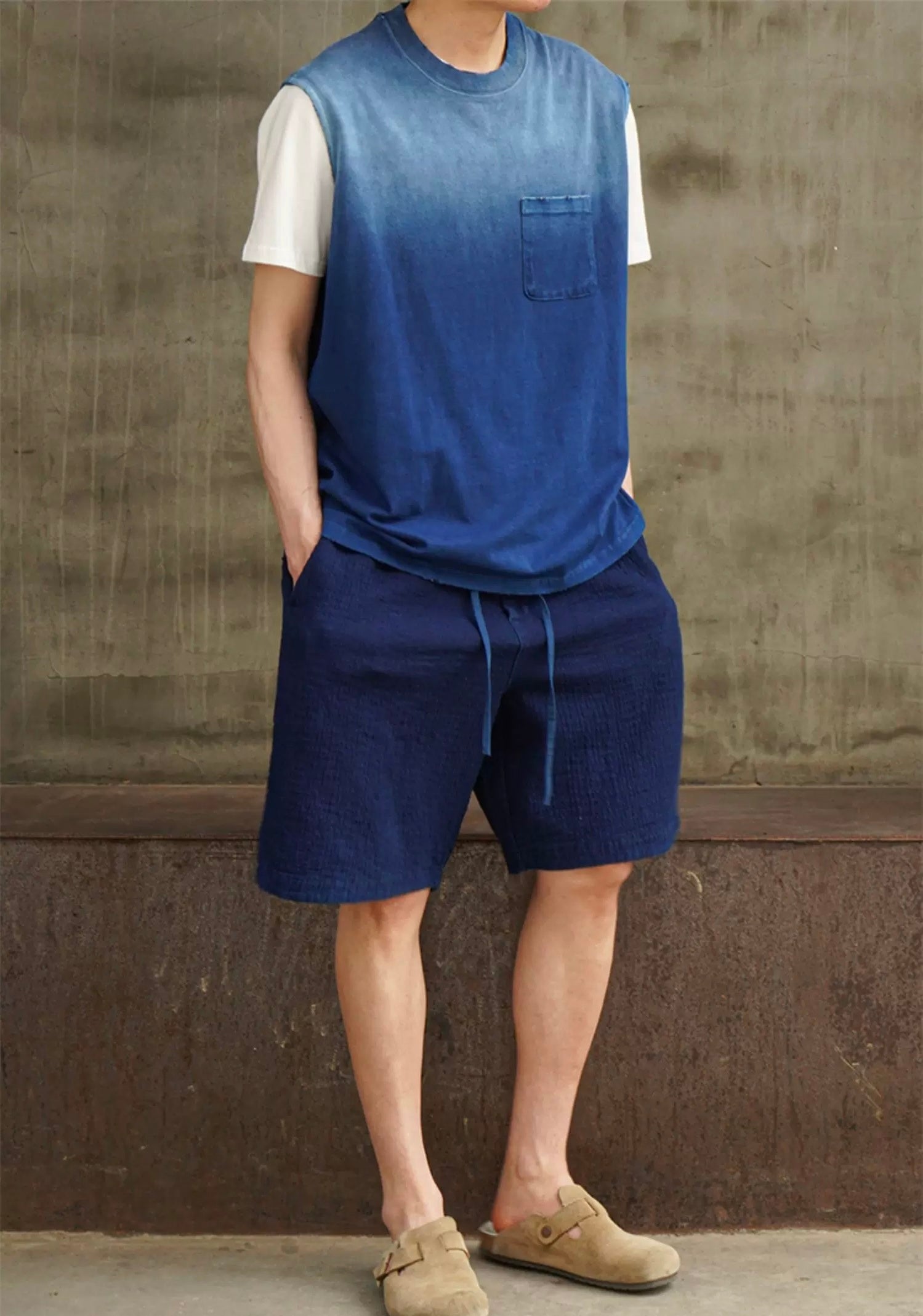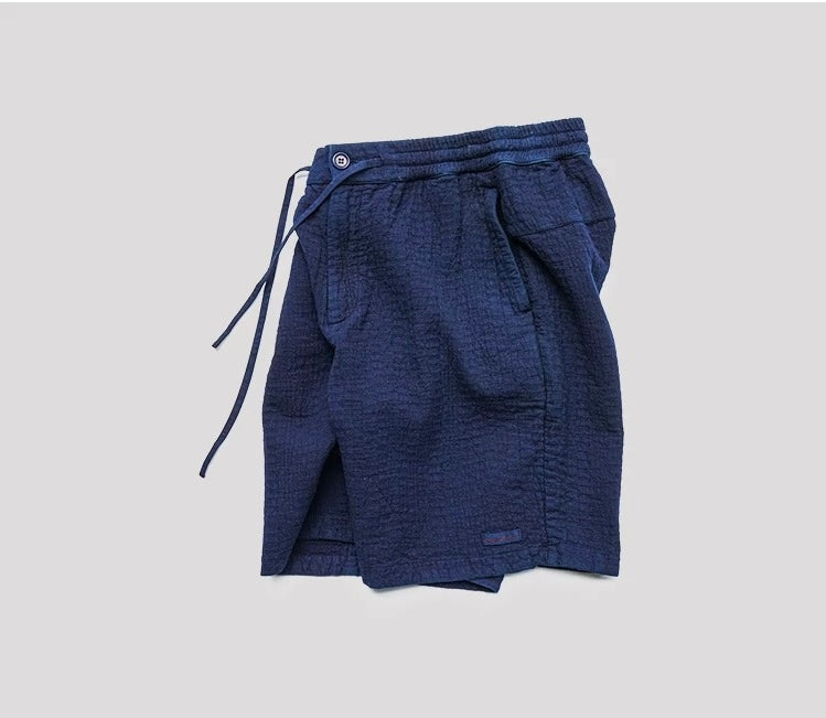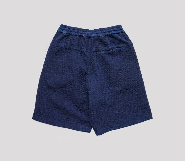 The Indigo Dye Kendo Elastic Waist Shorts are crafted from premium 380g sashiko kendo fabric, known for its durability and unique texture. These shorts have been dyed using natural indigo, giving them a deep, rich color that will naturally fade over time, adding character to each piece. The fabric is soft, breathable, and designed for comfort, making them ideal for warmer weather. With an elastic waistband for ease and flexibility, these shorts offer both style and practicality, perfect for casual wear or lounging.