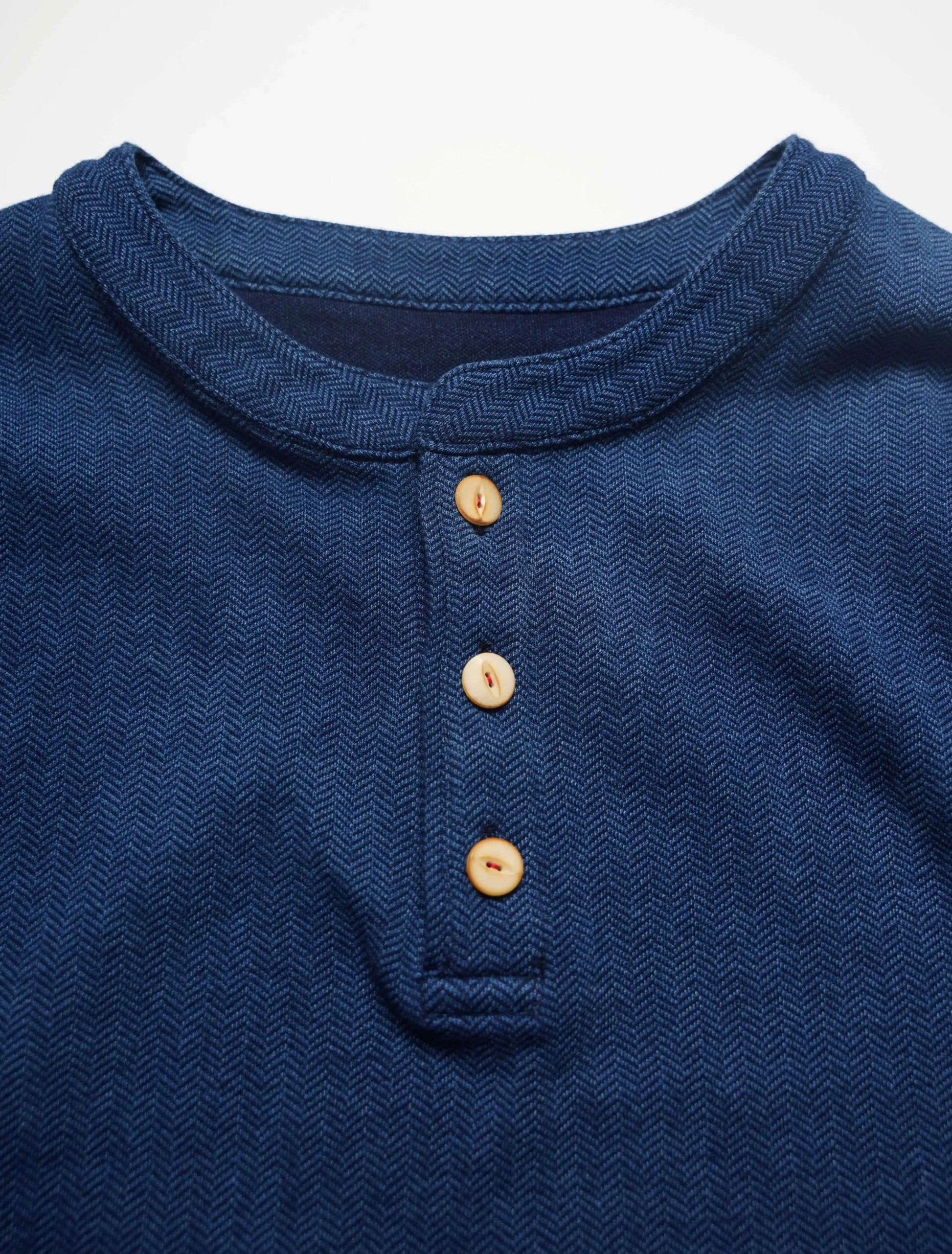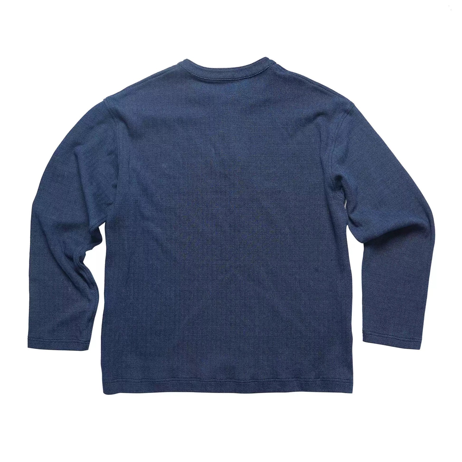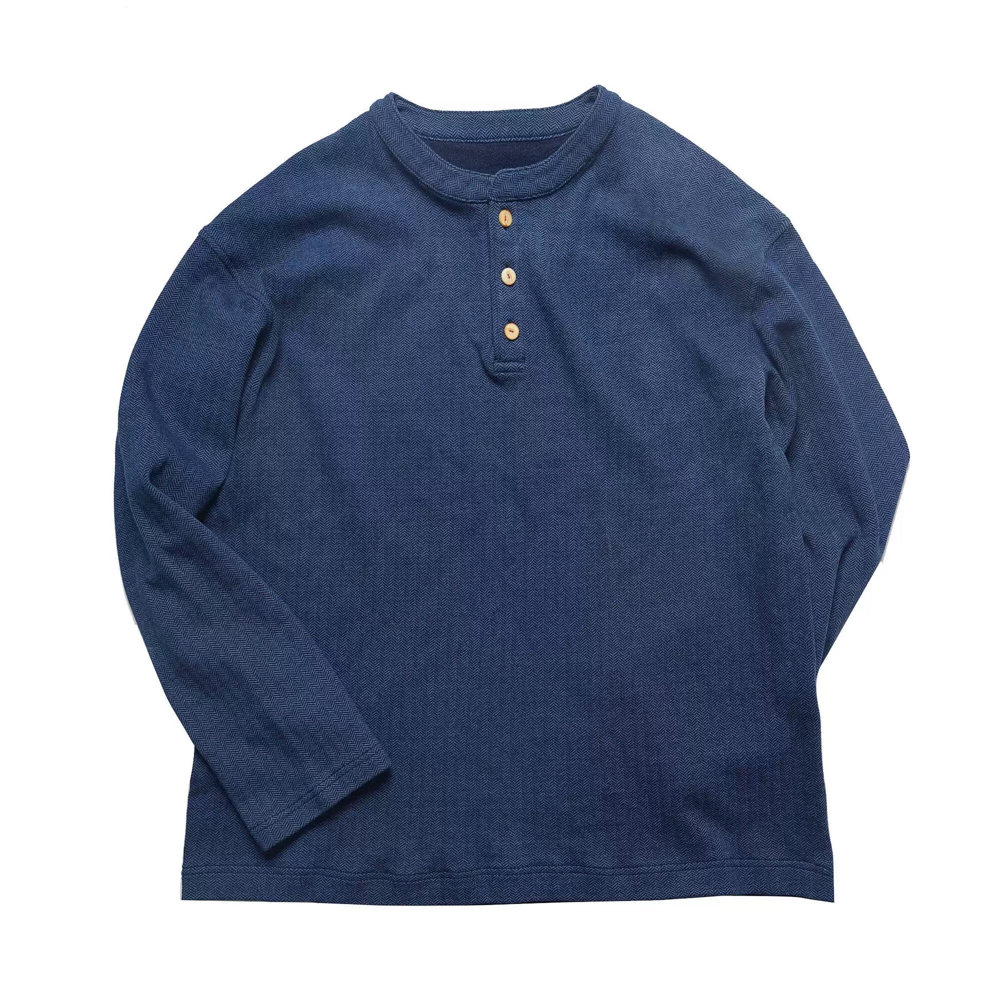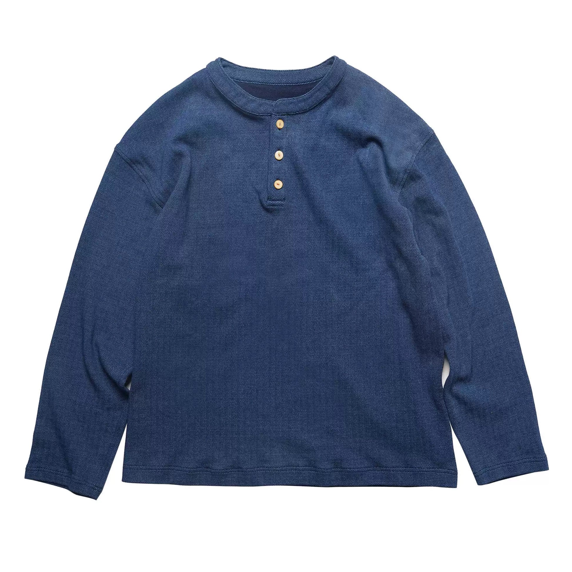 Indigo Dye Knit Henley Long Sleeve T-Shirt