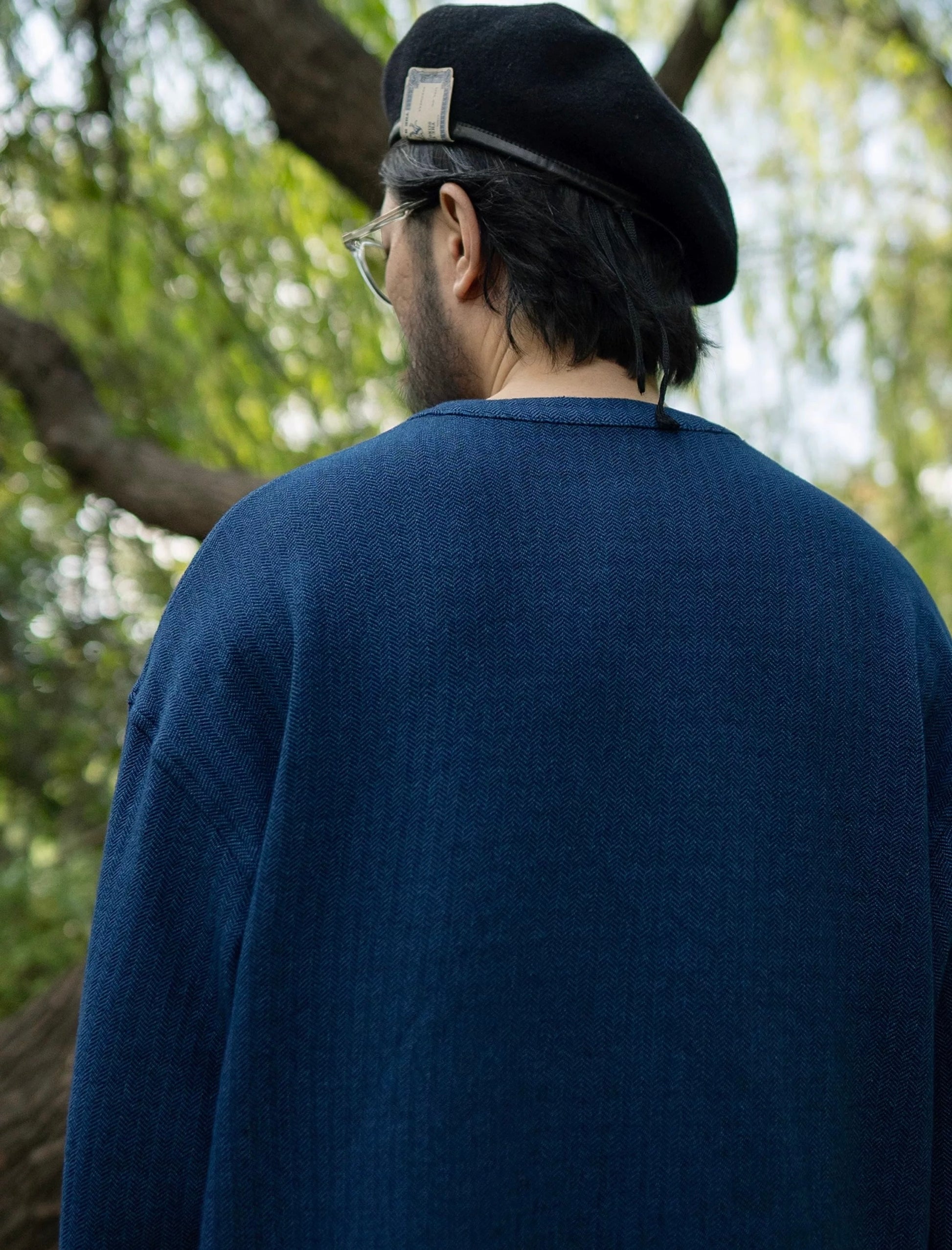 The Indigo Dye Knit Henley Long Sleeve T-Shirt is crafted for both durability and style. Made from heavyweight fabric, this long-sleeve t-shirt is ideal for cooler weather while offering a comfortable, relaxed fit. Each piece is meticulously dyed using organic indigo in our own dye pot, ensuring a deep, rich color that develops character over time. The indigo dye is also infused into the threads, creating a seamless blend of texture and color. This Henley-style t-shirt features a buttoned neckline for a classic look, making it versatile for both casual and layered outfits.