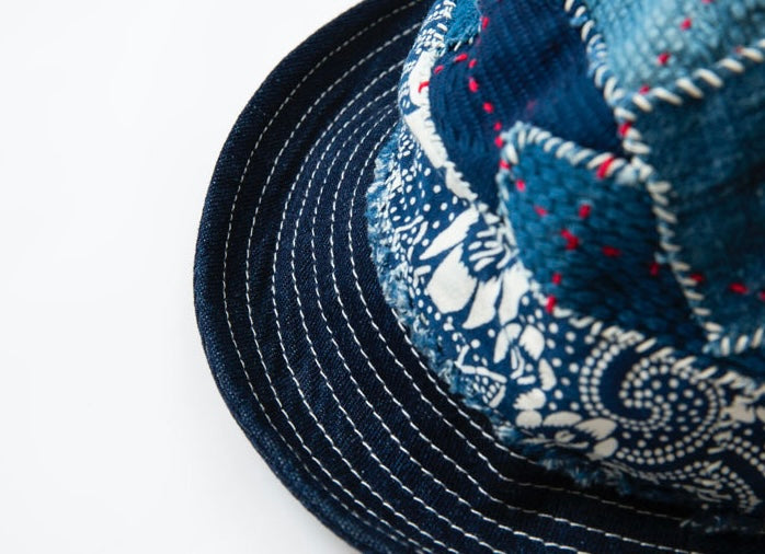 Indigo Dye Kofu Patchwork Bucket Hat