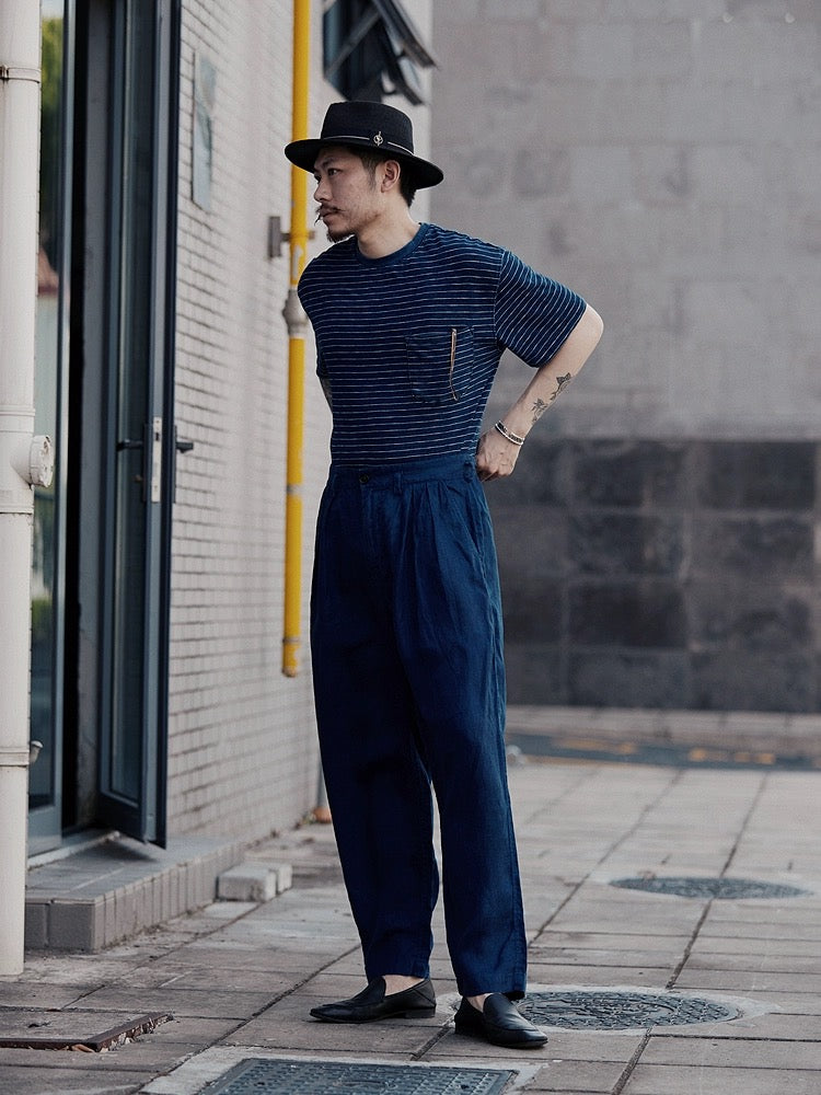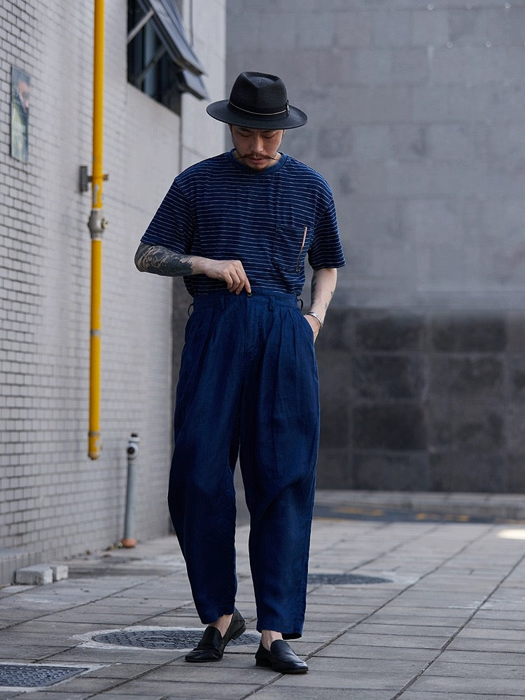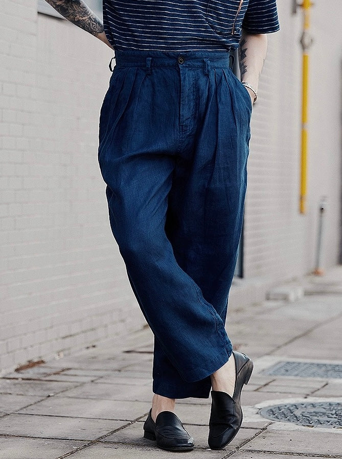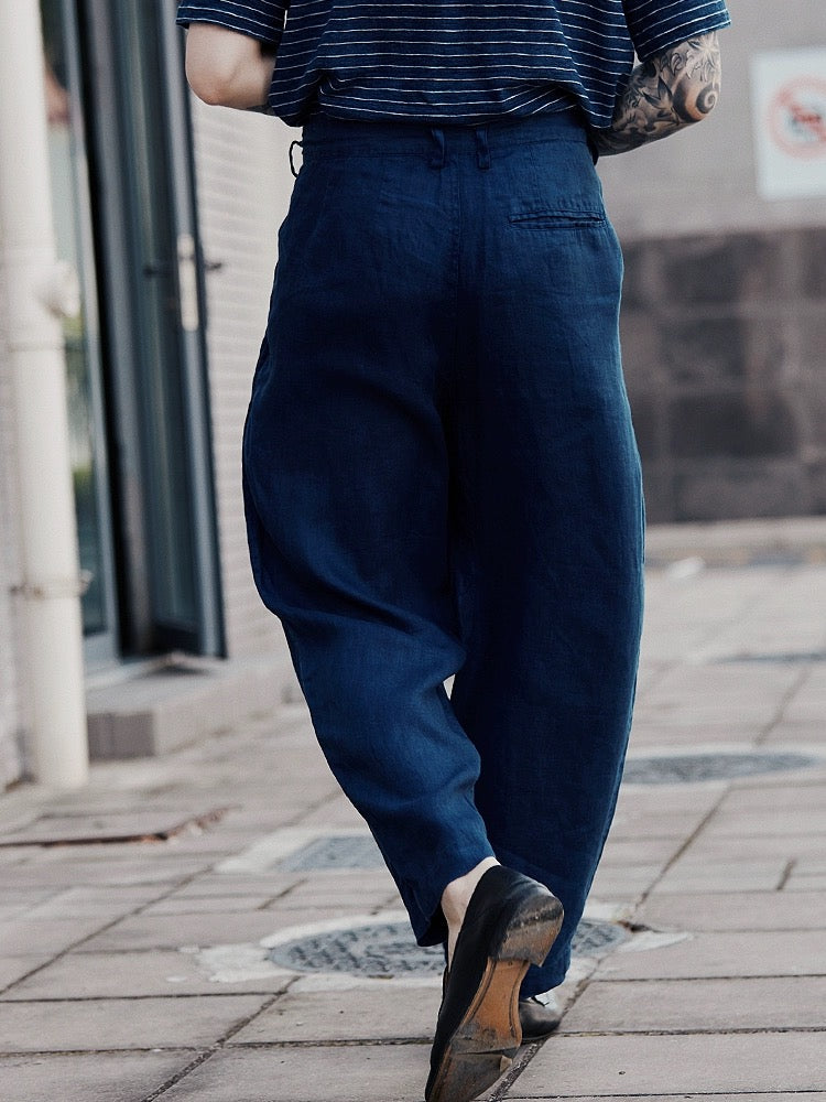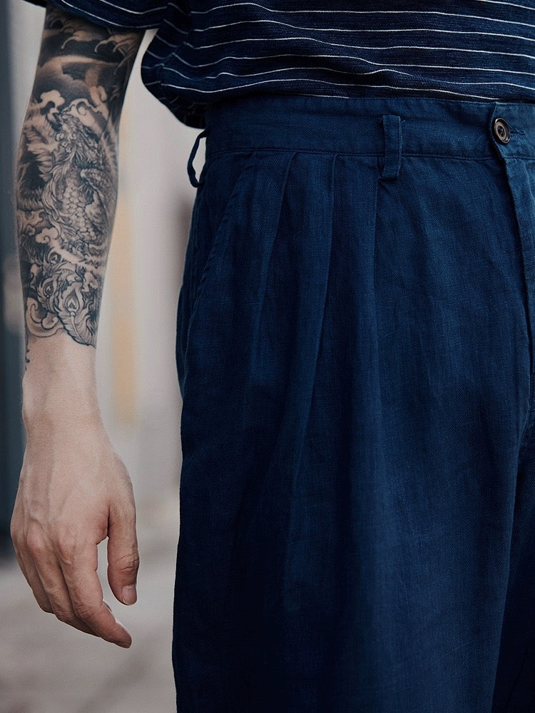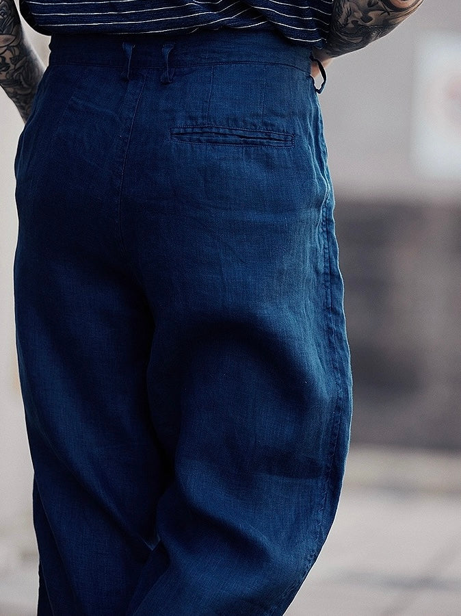 Indigo Dye Linen Tapered Pants
