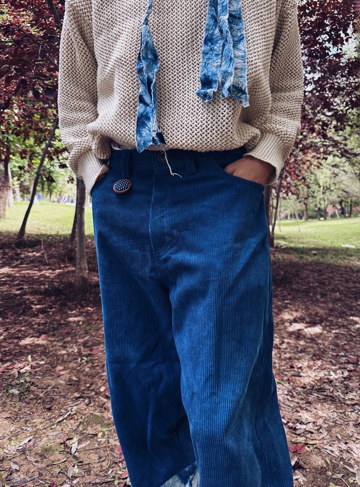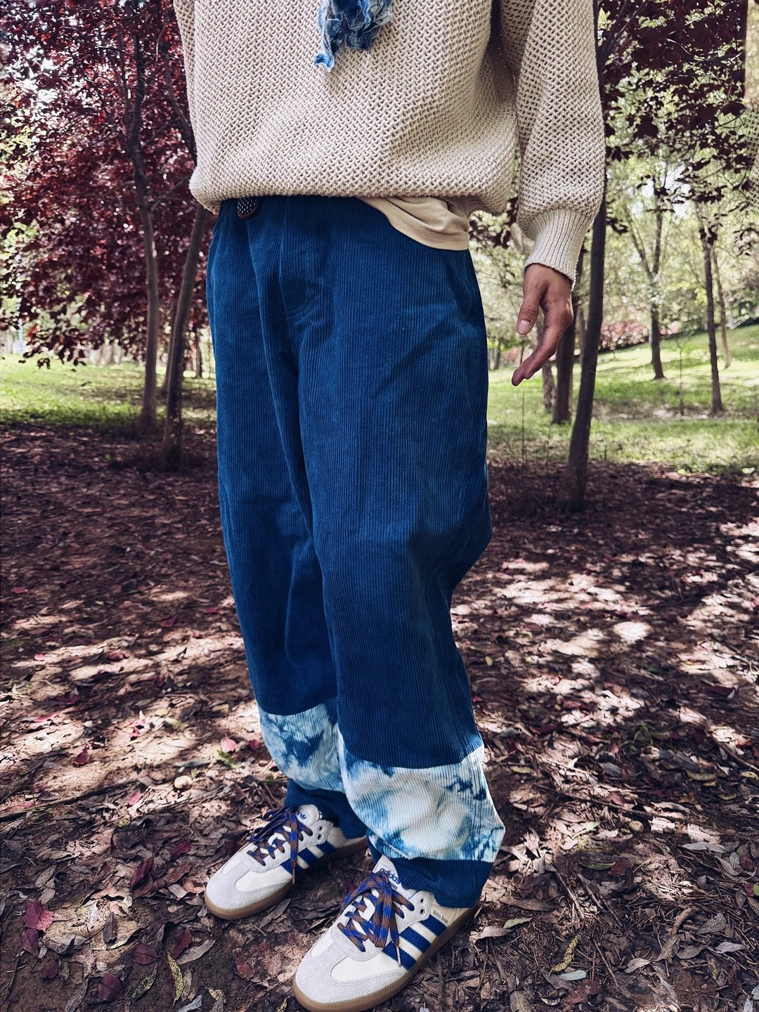 Indigo Dye Patchwork Corduroy Pants