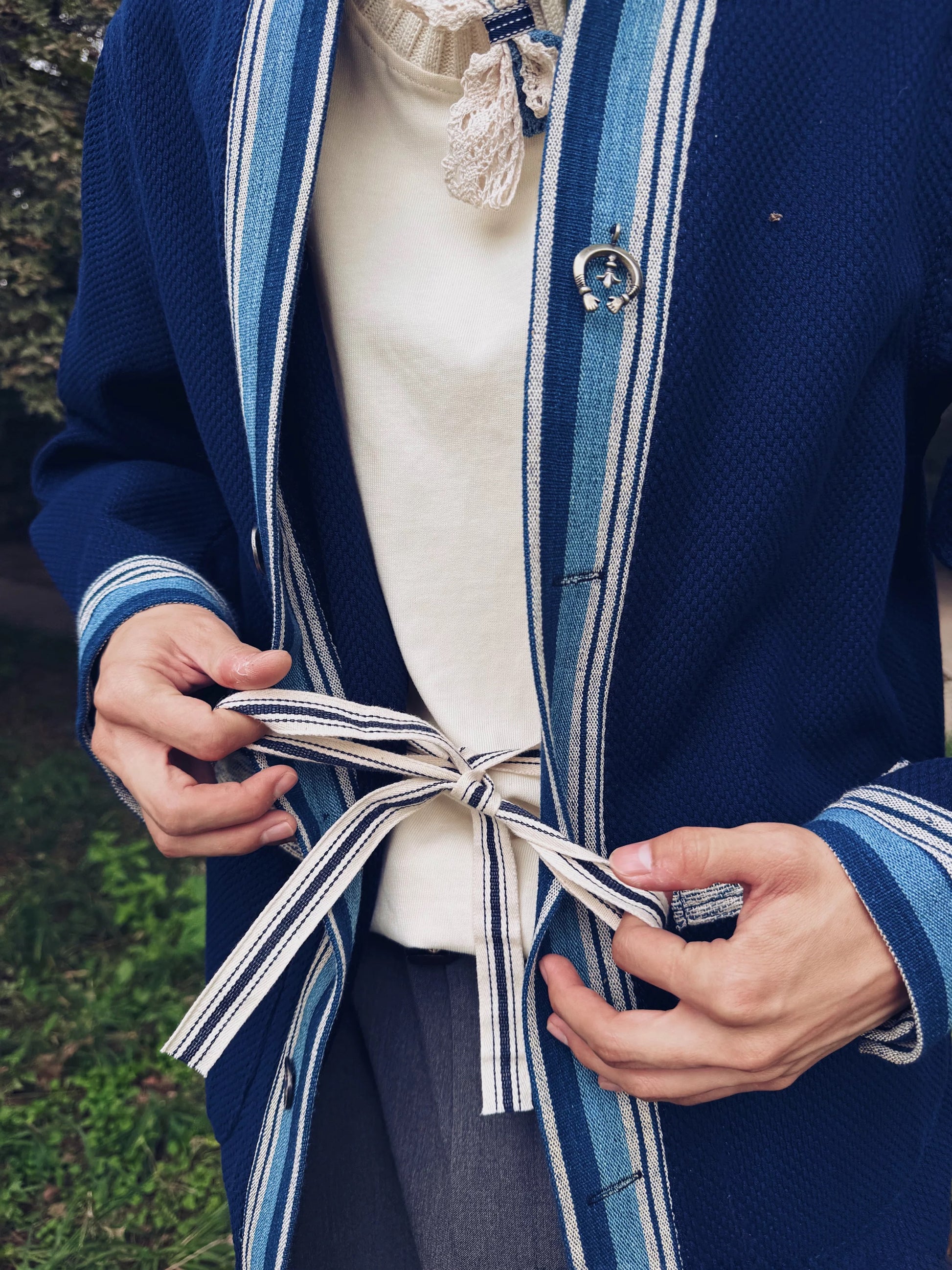Please note that due to the nature of indigo dye, slight color variations and fading over time are natural and contribute to the unique character of the garment.