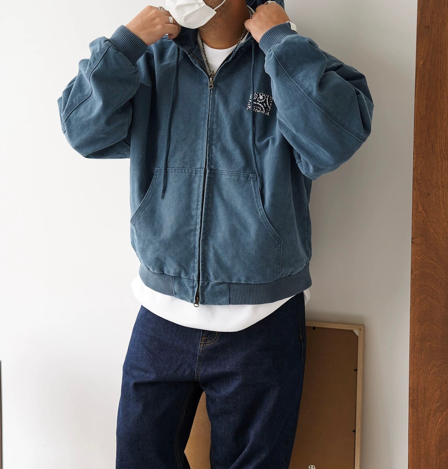 Indigo Dye Patchwork Sashiko Zip Up Jacket