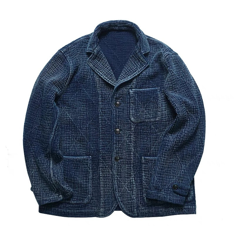 Indigo Dye Sashiko 3 Buttons Blazer Jacket