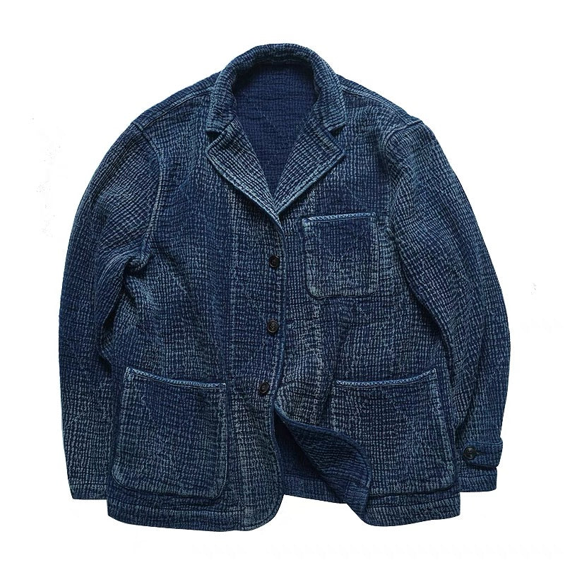 The Indigo Dye Sashiko 3 Buttons Blazer Jacket is a versatile piece that effortlessly transitions between formal and casual settings. Inspired by classic American style, this jacket combines timeless design with the unique artistry of traditional Japanese techniques.