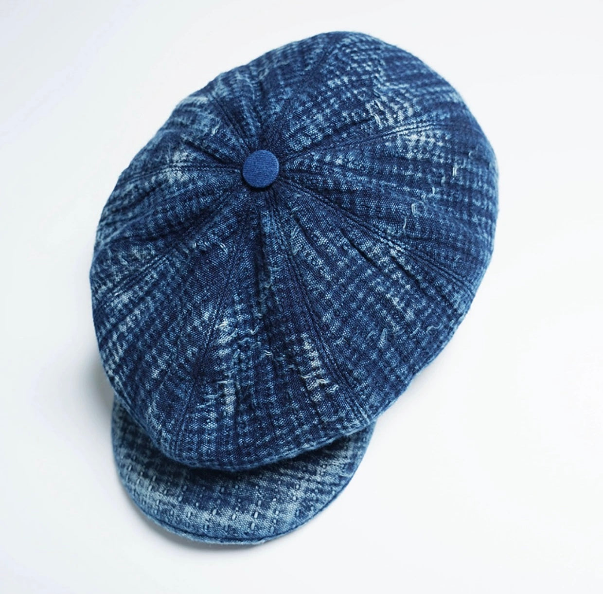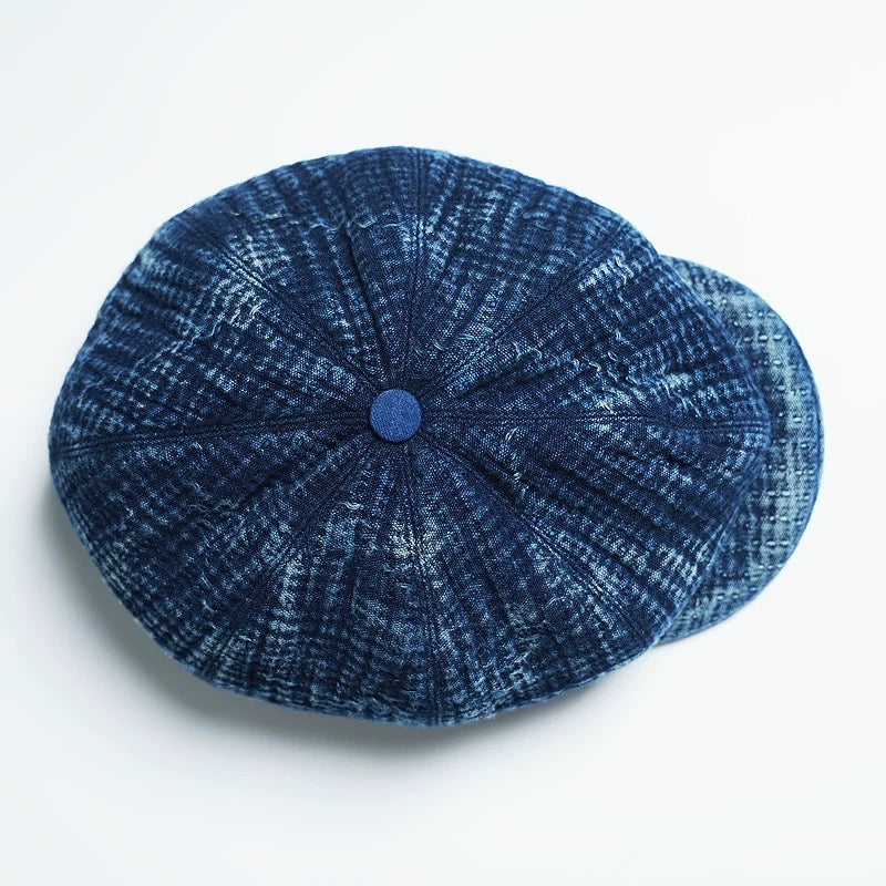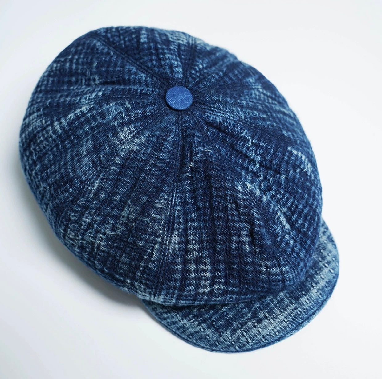 Indigo Dye Sashiko Heavy Wash Newsboy Cap