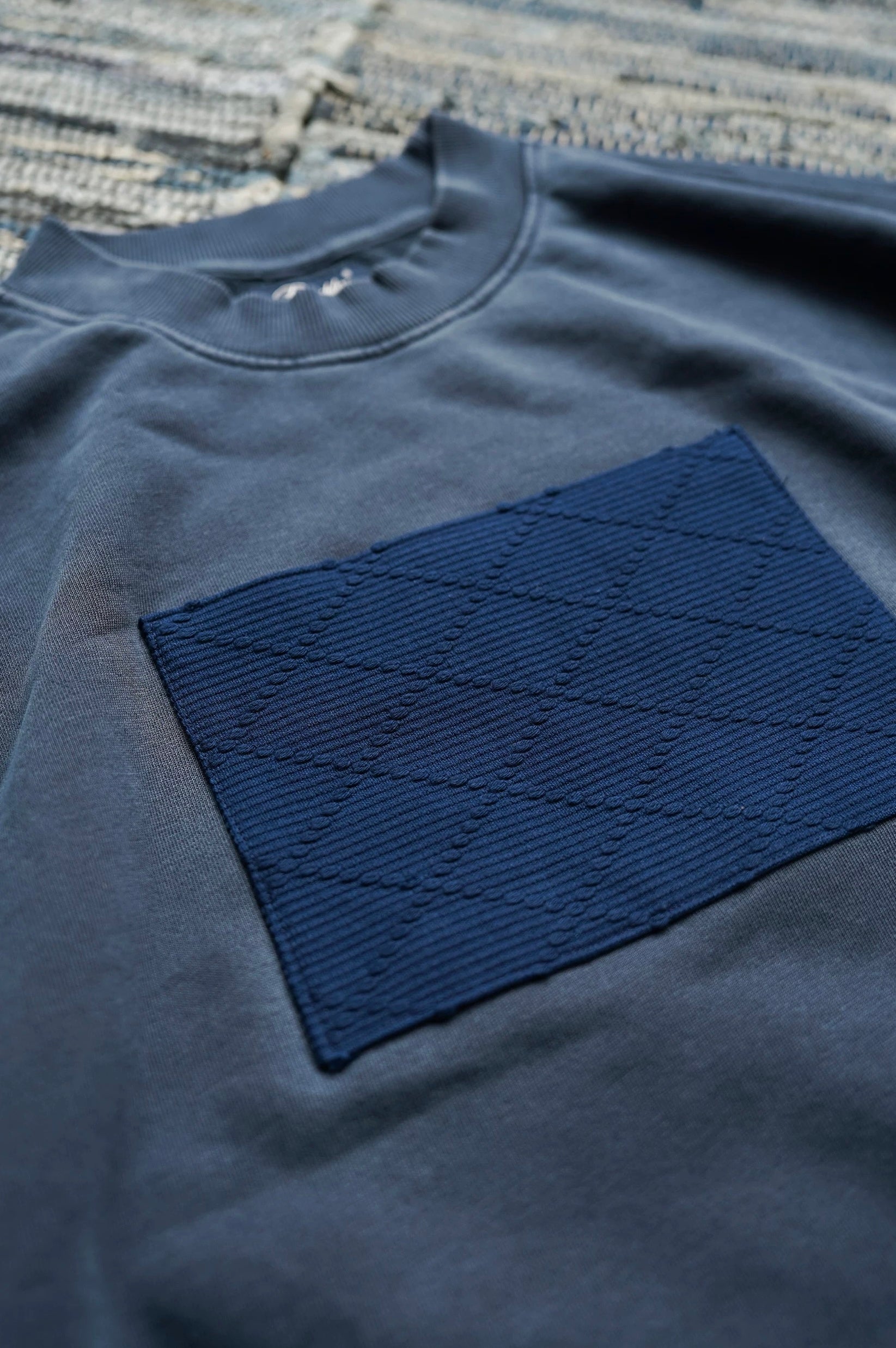 Indigo Dye Sashiko Patchwork Sweatshirt