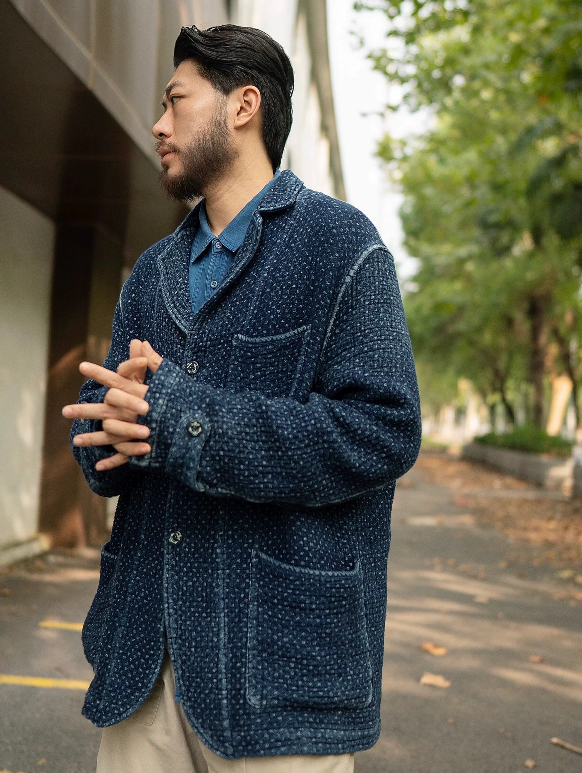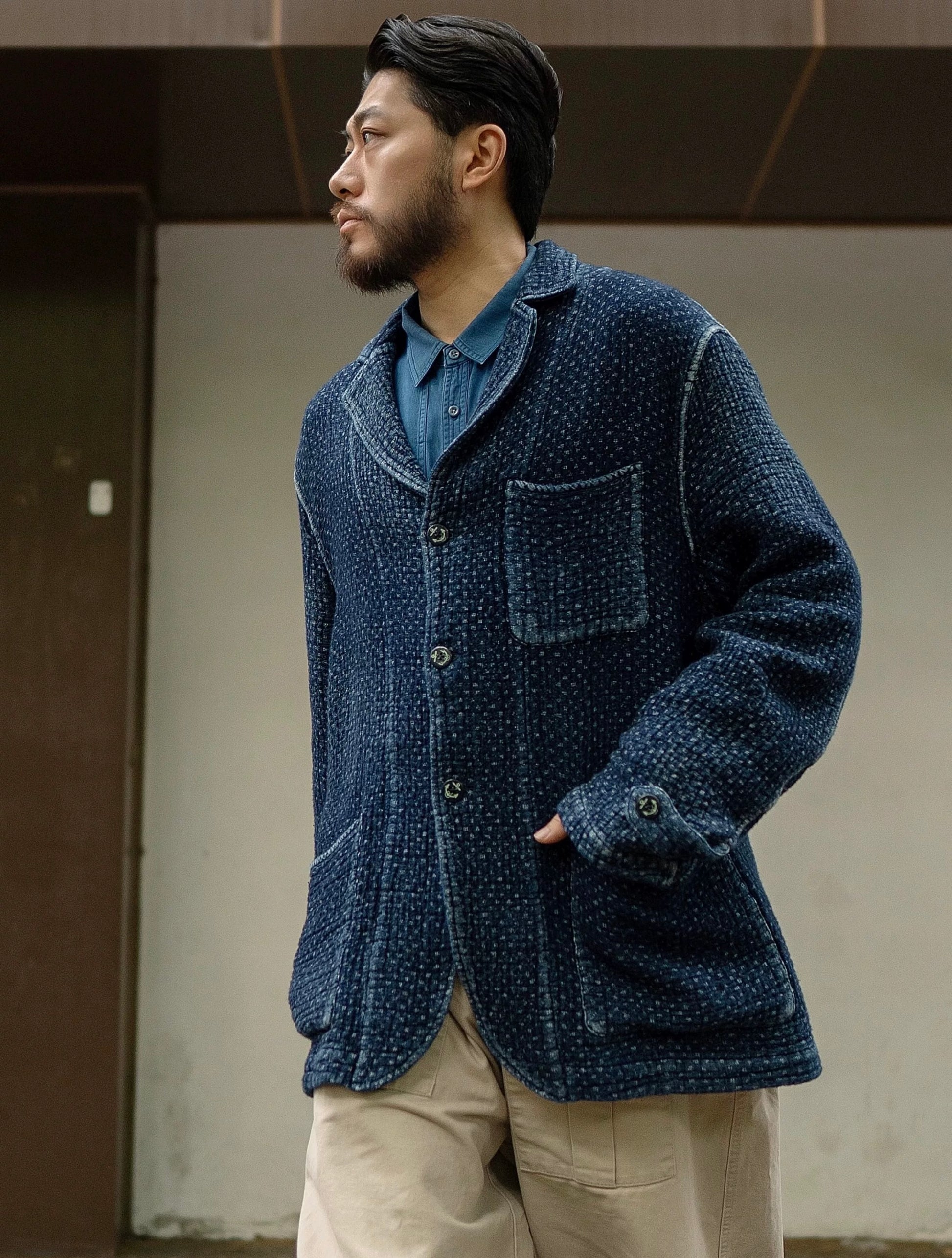 Indigo Dye Sashiko Retro Americano Jacket