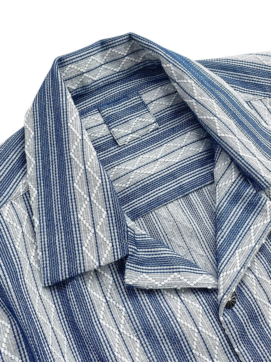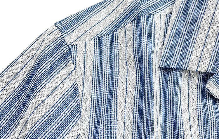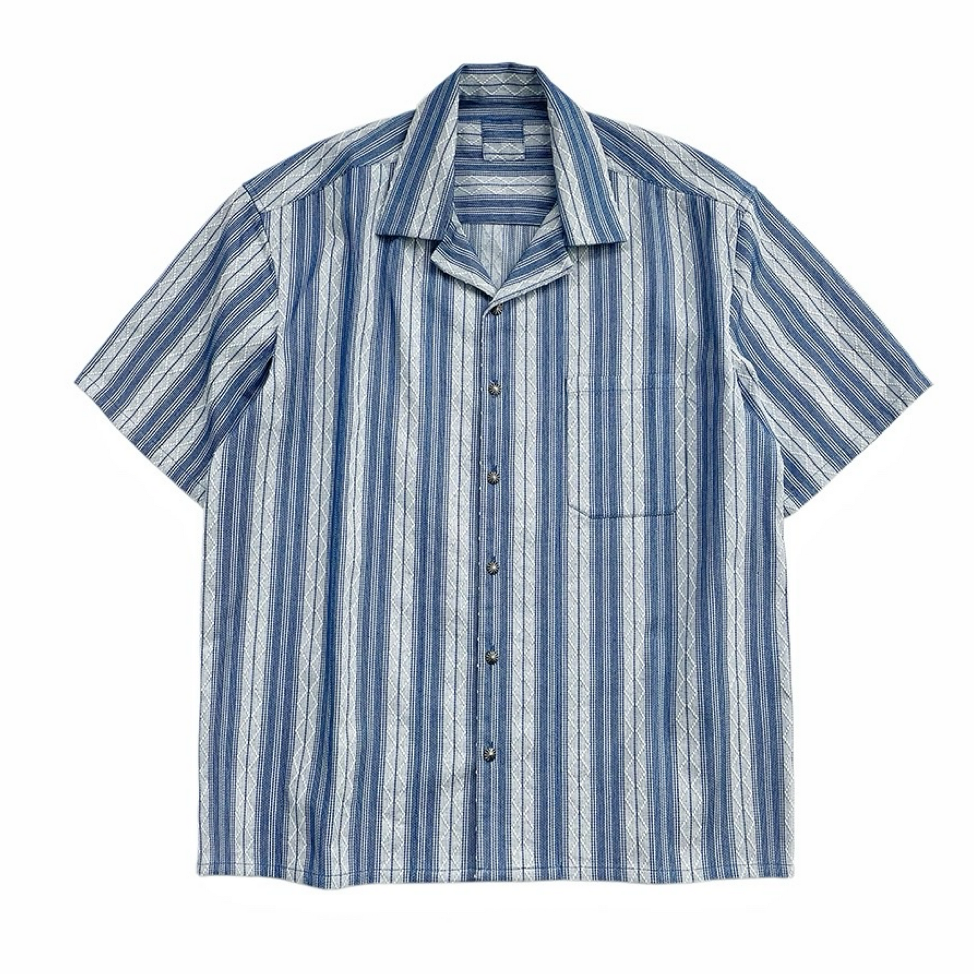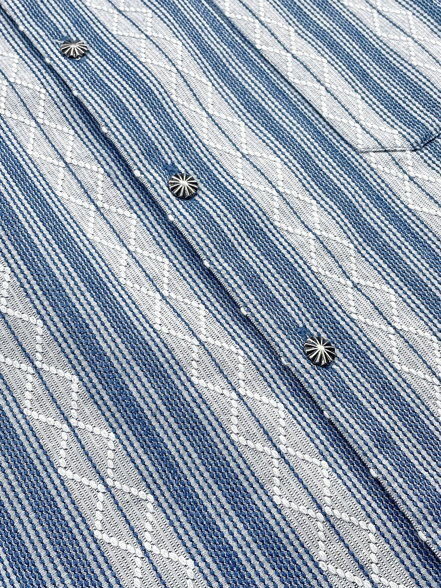 Indigo Dye Sashiko Striped Aloha Shirt