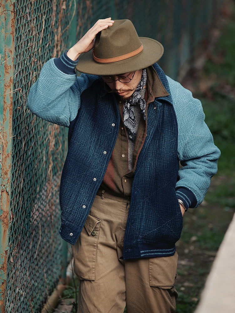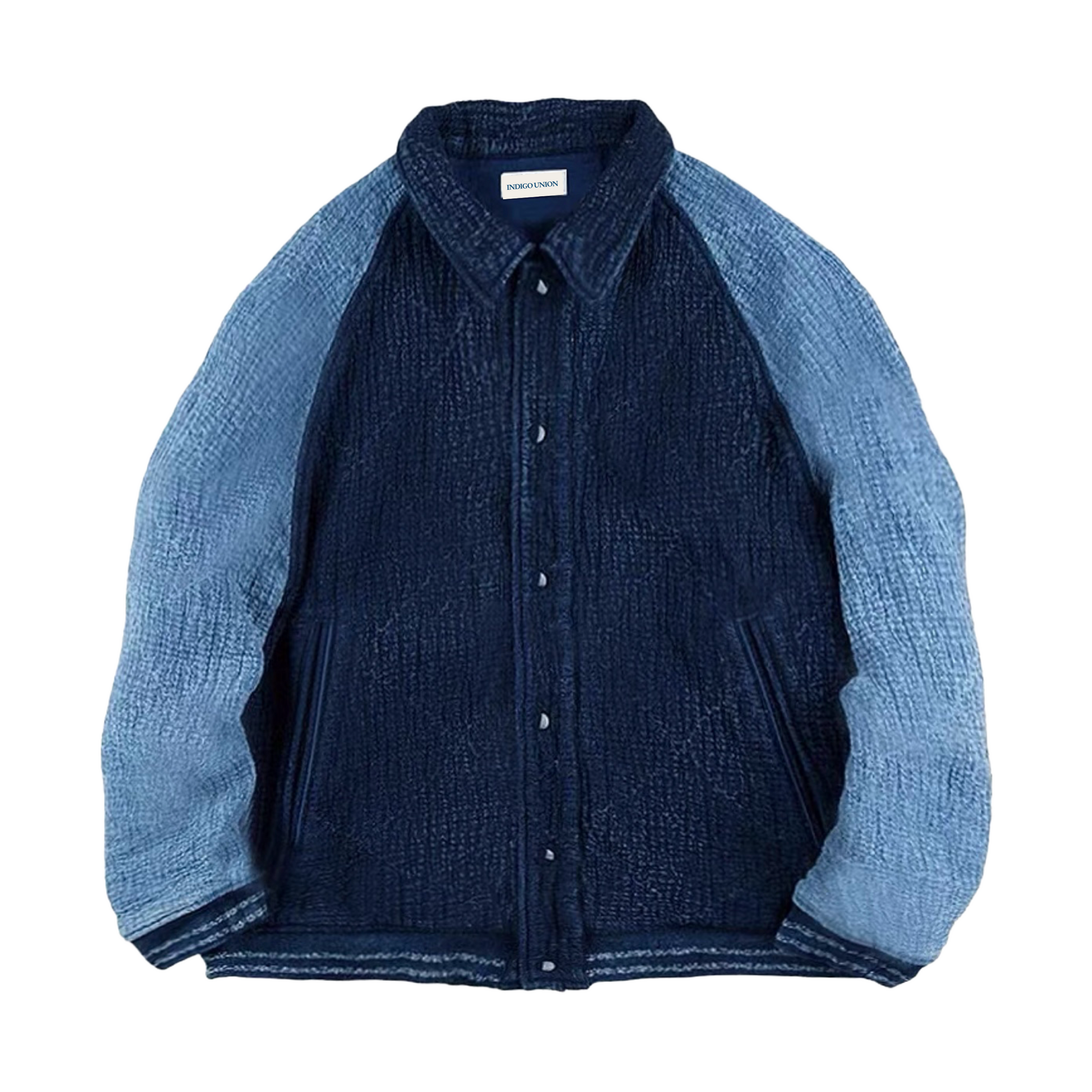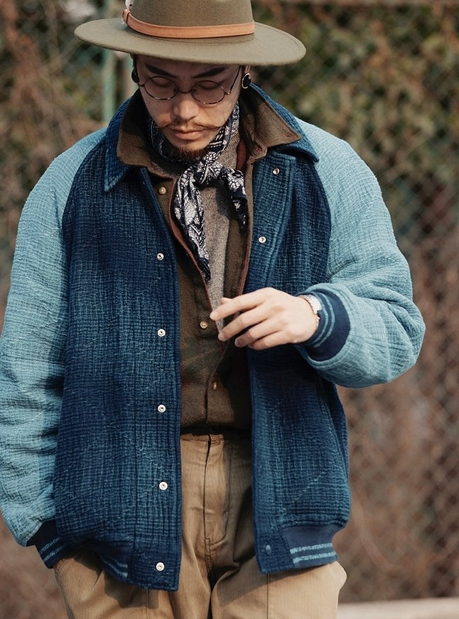 Indigo Dye Sashiko Two Tone Baseball Jacket