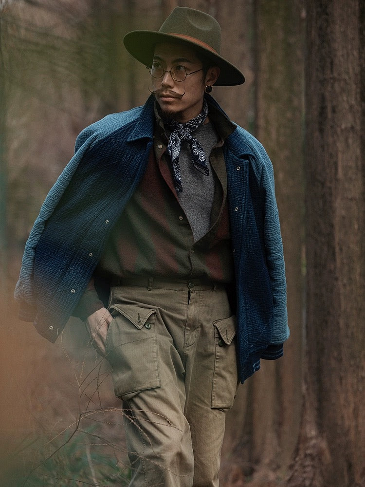 Please note that due to the nature of indigo dye, slight color variations and fading over time are natural and contribute to the unique character of the garment.