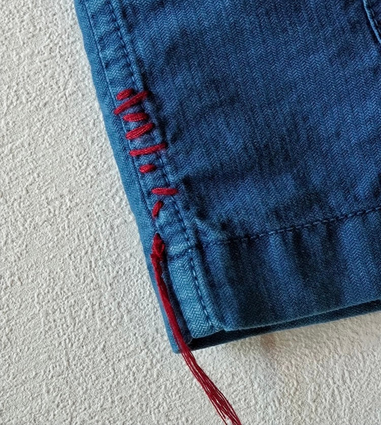 - Ironing: If ironing is necessary, use a low to medium heat setting and iron the garment inside out to protect the indigo dye. Avoid direct contact between the iron and the fabric for extended periods.