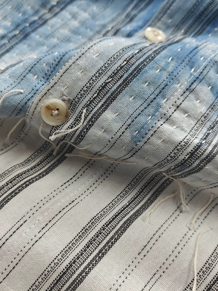 Indigo Tie Dye Striped 2-Tone Aloha Shirt