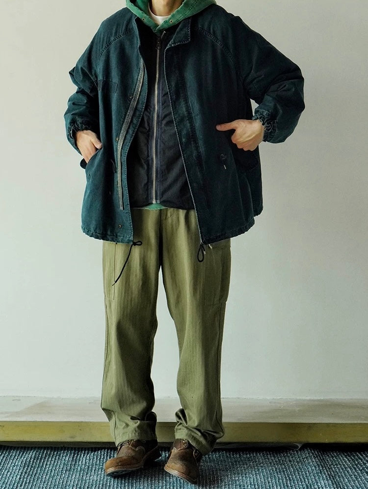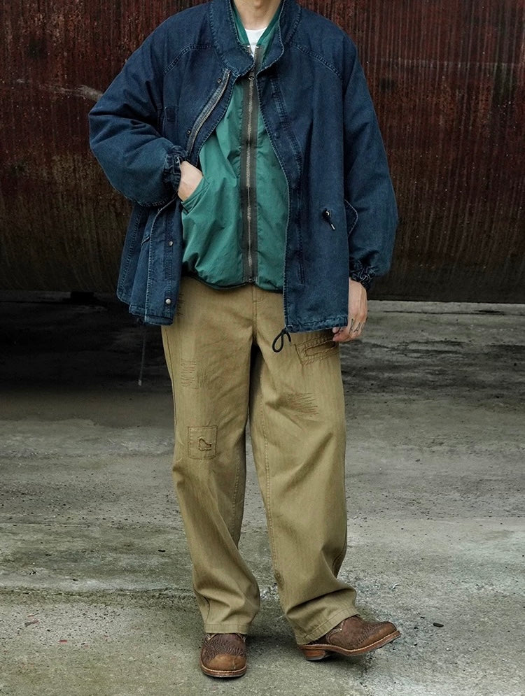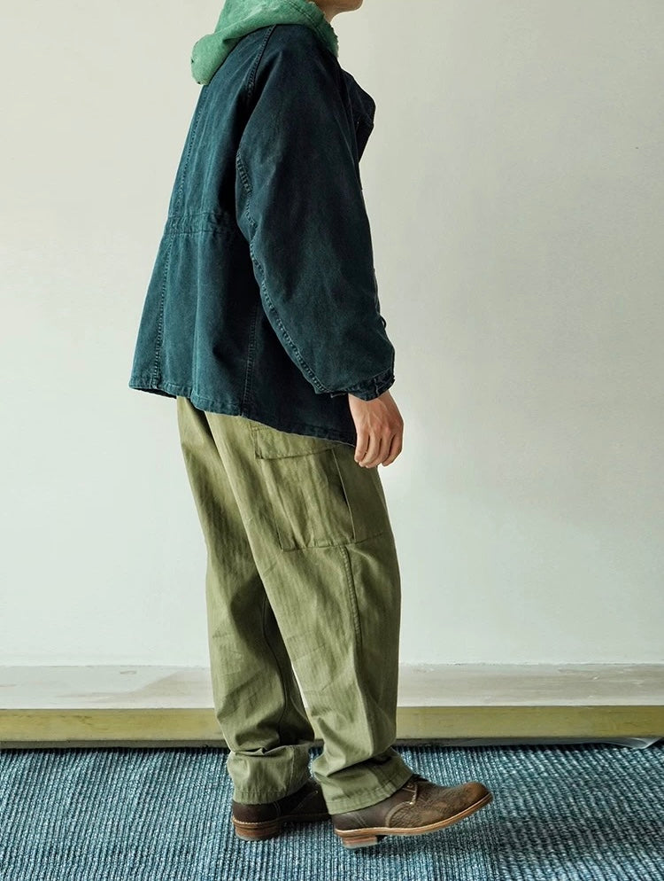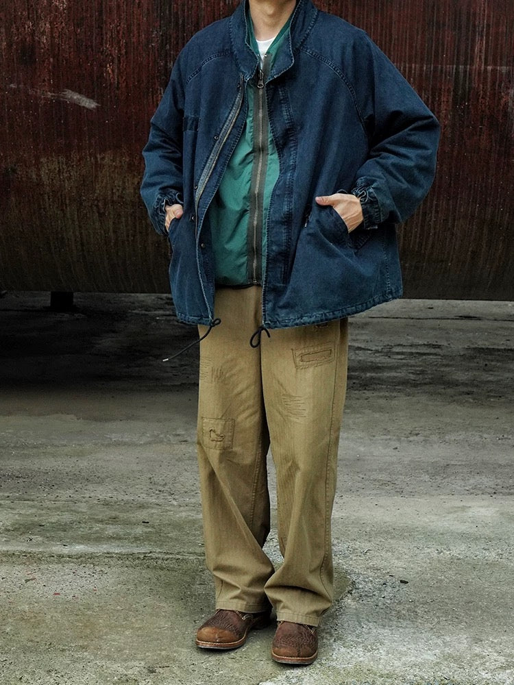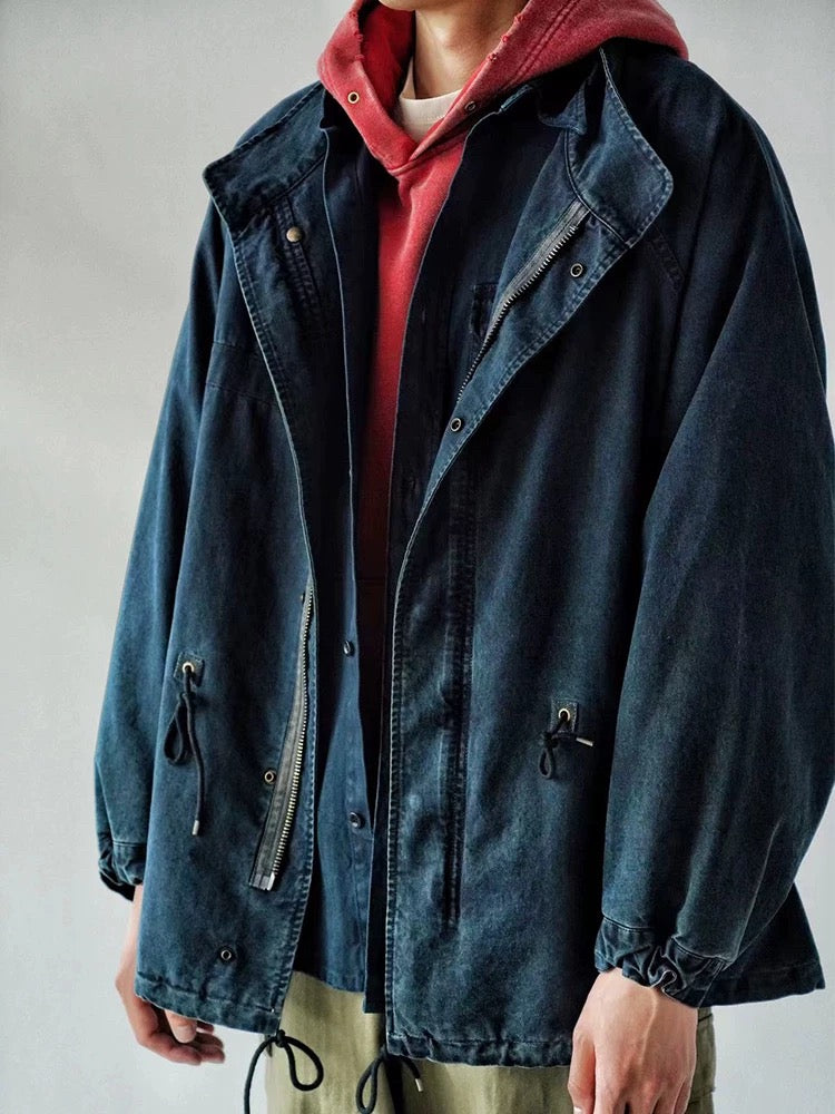 The Organic Plant Dye Washed Short M65 Parka is crafted from high-quality, 100% cotton, providing both comfort and breathability. Its distinctive color comes from a natural dyeing process: first, a rich brown shade is created using organic walnut shell dye, then layered with indigo to achieve a deep, dark blue. This unique dye technique gives the parka a layered color effect that subtly changes with each wash, enhancing its vintage look over time.