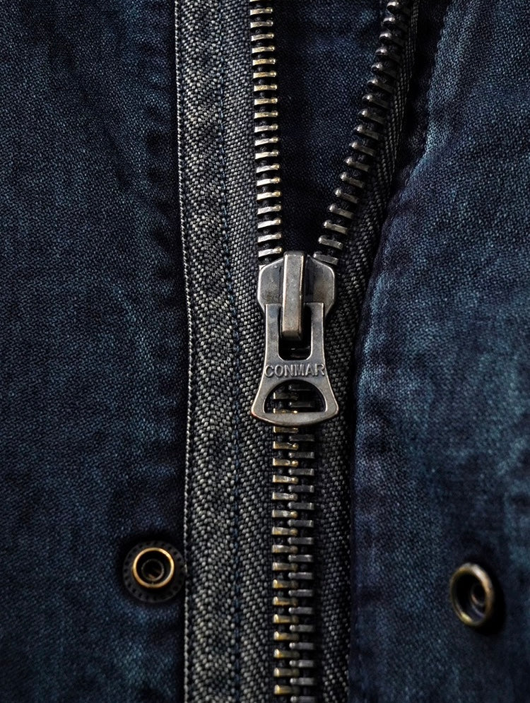 Inspired by the classic M65 parka, this version has been tailored to a shorter length for a modern fit while retaining a retro feel. It’s finished with a Conmar zipper, adding a touch of authentic, vintage charm. The parka embodies a timeless style, enhanced by eco-friendly dyeing and a color that evolves with every wear, making each piece truly unique.